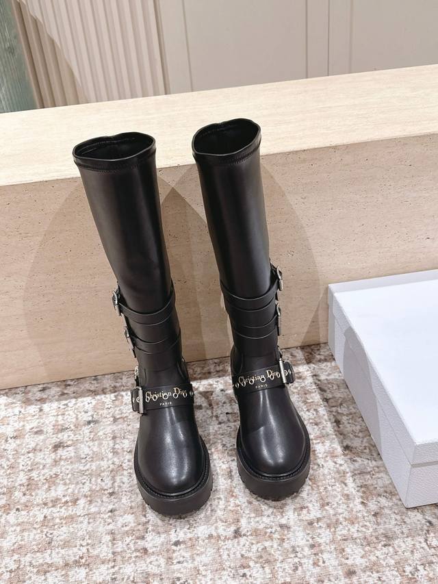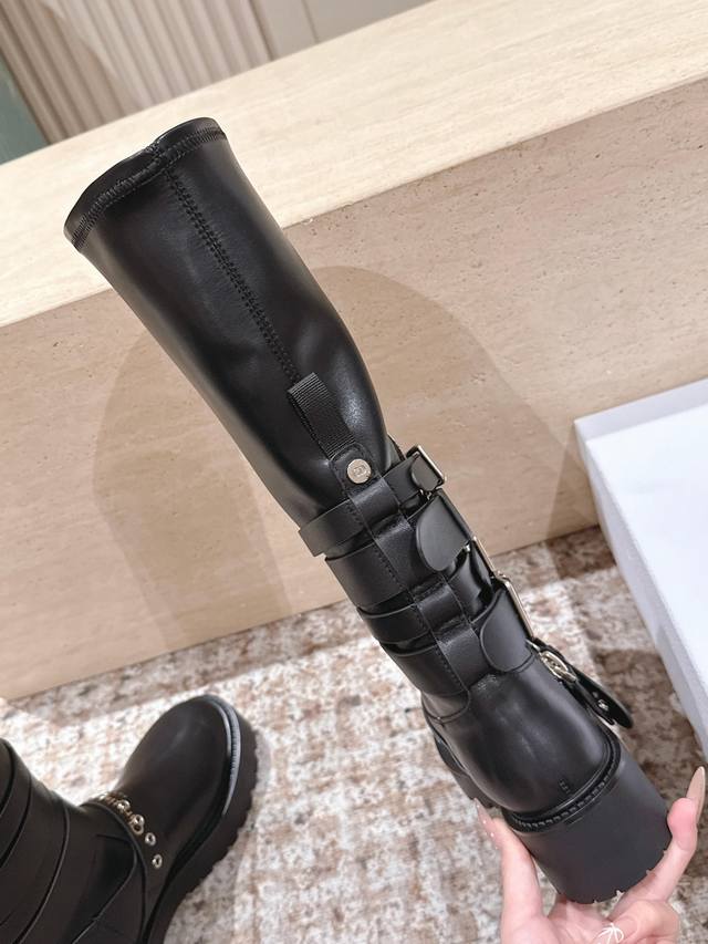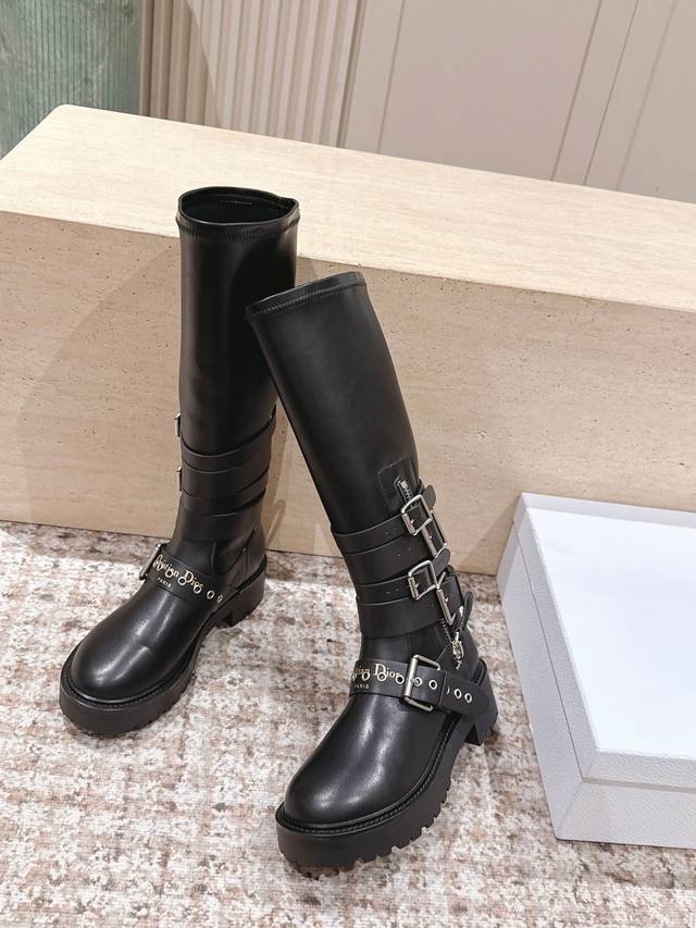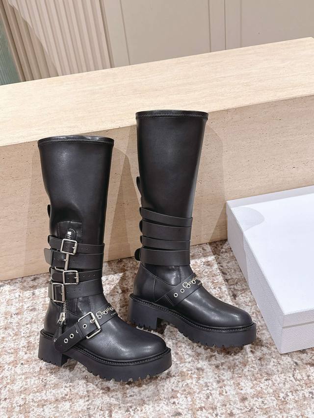 Retailer-grade DDD Dior 25 New Mid-calf/High-top Brogue Boots DDD New arrival from the 25 Early Spring Ready-to-Wear collection, showcasing haute couture charm. Black rubber-effect calfskin barrel design, with silver zipper details on the sides for added style. Paired with a thick yet lightweight notched sole, it adds a touch of glamour to this season's casual looks. DDD Calfskin upper, calfskin lining, heel height: 4.5cm, original mold TPU outsole DDD Size: 35-41, 40 & 41 are custom-made and non-refundable DDD