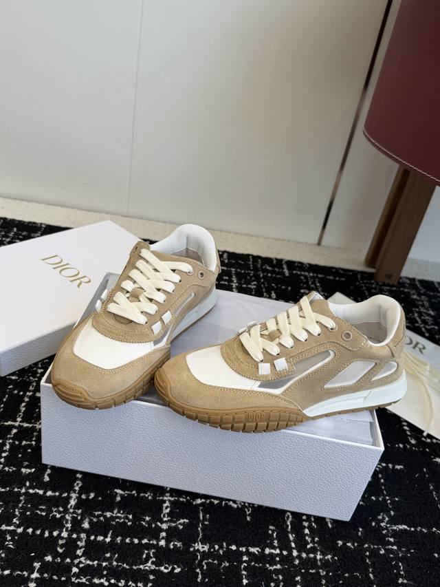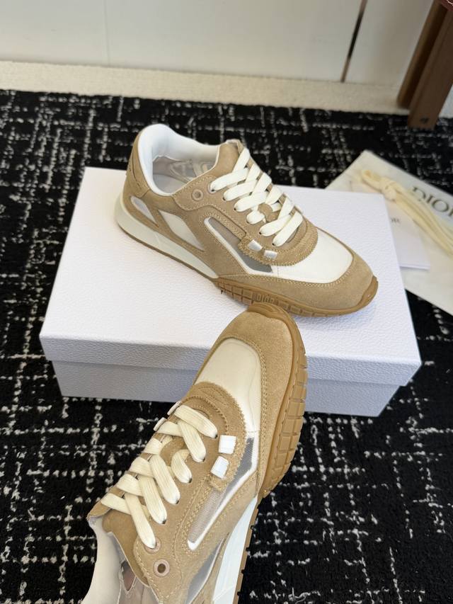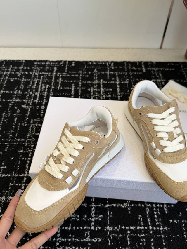 Retail-grade Dior Spring/Summer 2026 New Couple Casual Shoes (Training Style) The upper is meticulously crafted with a combination of suede and mesh, adorned with a matching suede cowhide leather panel on the front. The lace-up design makes them easy to slip on and off. The thick sole is flattering and slimming, suitable for both trousers and skirts, versatile and stylish. Highly recommended! Perfect original last, super comfortable on the foot. Original mesh lining. Upper: Suede and mesh combination; Lining: Sheepskin; Outsole: TPU. Size: Men's/Women's 35-45, Women's 40, Men's 45. Custom orders are non-refundable.
