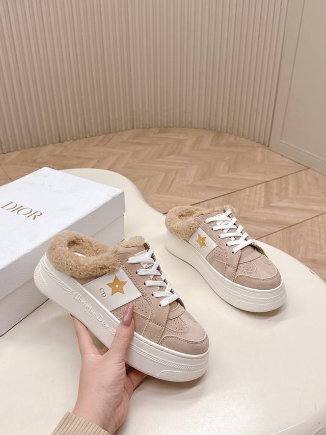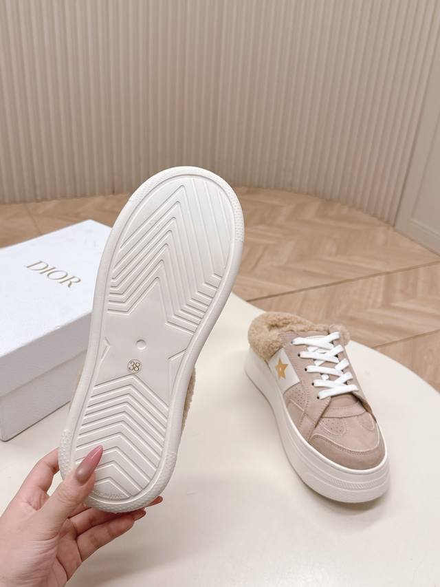 Selling Dior Fall/Winter New Style Furry Platform Sandals - Classic, High-End, Elegant, Gentle, and Free-spirited~ Superbly stylish and comfortable on the feet, the thick sole is slimming and height-enhancing, further highlighting your temperament. Material: Imported sheepskin, soft and comfortable. Lining: Wool. Sole: Original outsole. Sizes: 35-40.