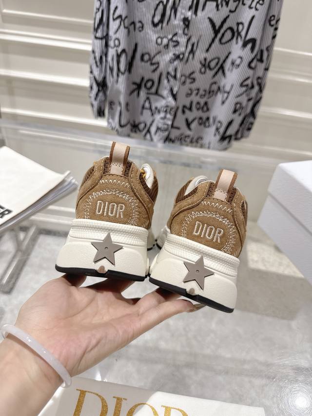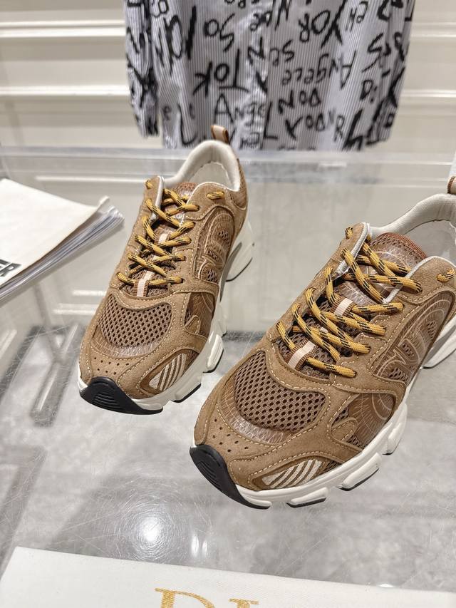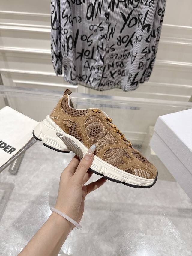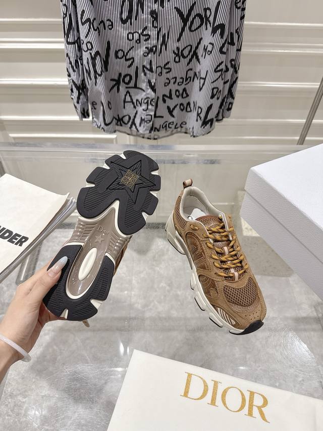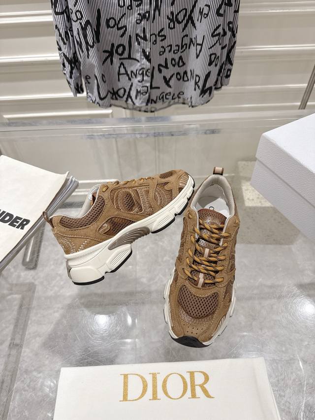 Selling Dior New Chrono Series Thick-Soled Mesh Color-Blocked Running Shoes, Dad Shoes, Casual Sports Shoes. Top-Tier Original Purchase and Developed. This Dior Chrono sneaker features white and black mesh fabric with leather-effect panels. Details such as the Cd logo on the sides, star patches on the tongue, and the Dior logo on the heel showcase its style. Two-tone laces and a lightweight sole adorned with star decorations allow for year-round casual styling, complementing various casual or elegant items. Material: Original imported top-grain cowhide + mesh. Lining: Original custom breathable mesh lining. Outsole: Original molded non-slip rubber outsole. Sole thickness: Approx. 4.5cm. Sizes: 35-41.