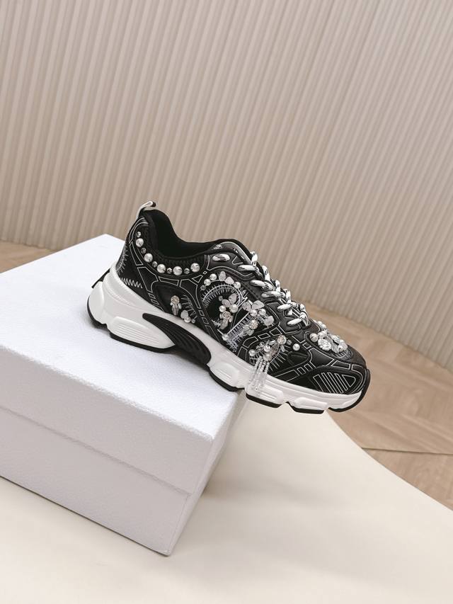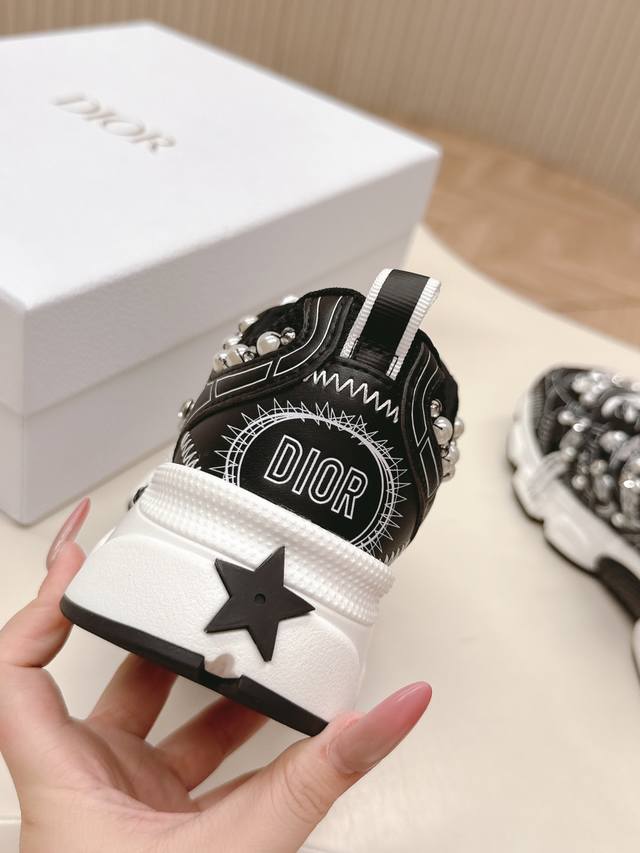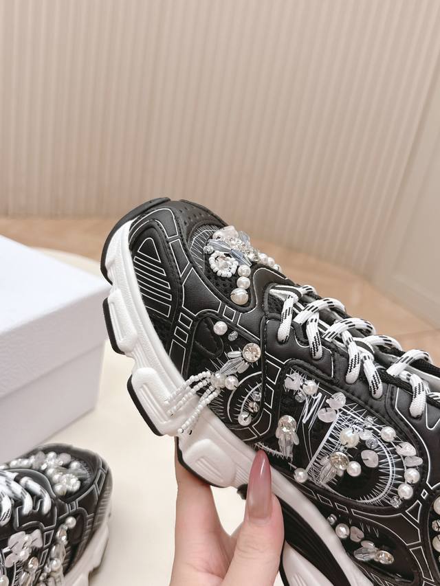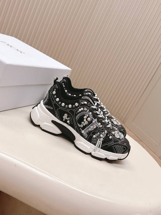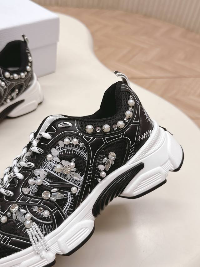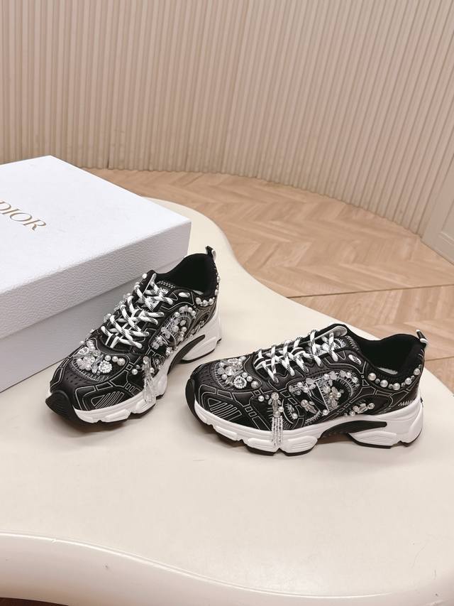 Selling with extra wool, plus 20. Latest Dior Chrono casual sneakers, running shoes, and chunky sneakers in two colors with pearls and rhinestones