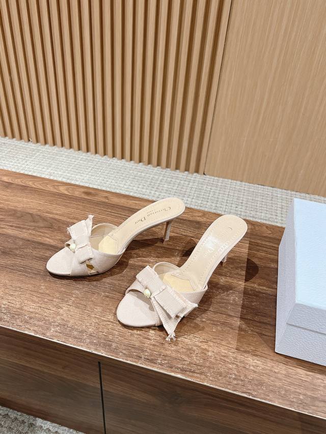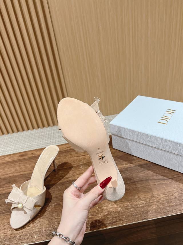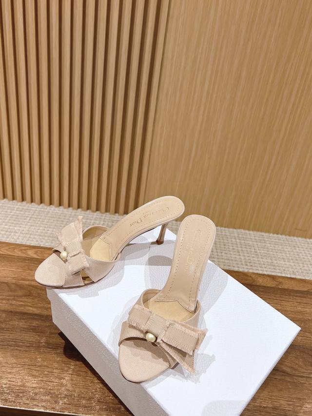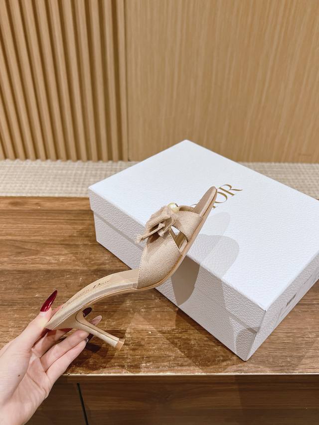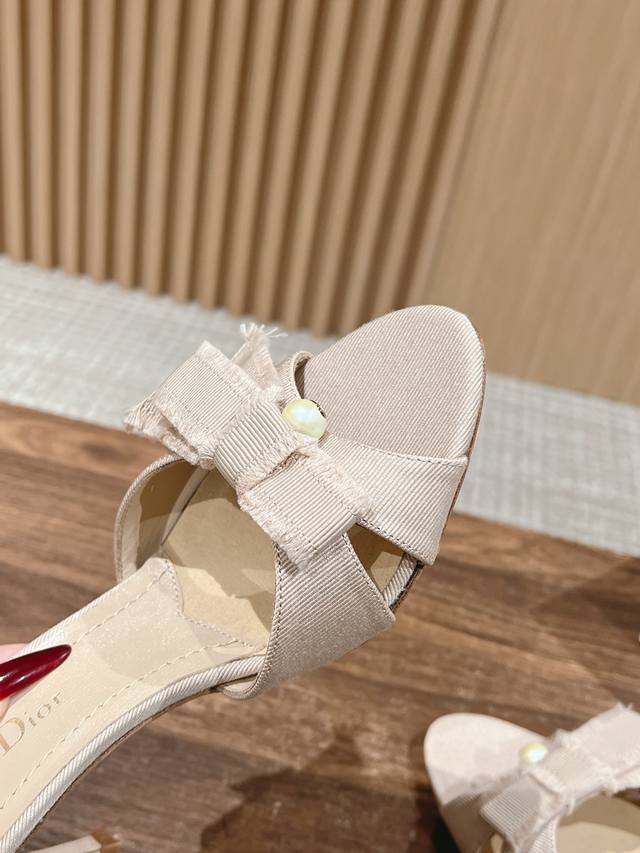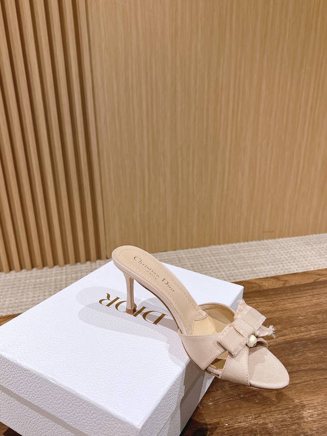Sngg Introduction | Dior's new spring releases! Detailed photos of Dior's new pearl bow high-heeled slippers. Cd home bow pearl kitten heel slippers] Presented by Cd], the Adiorable high heels feature a stylish black tasseled grosgrain upper. White beading and bows add a touch of elegance to the modern look.