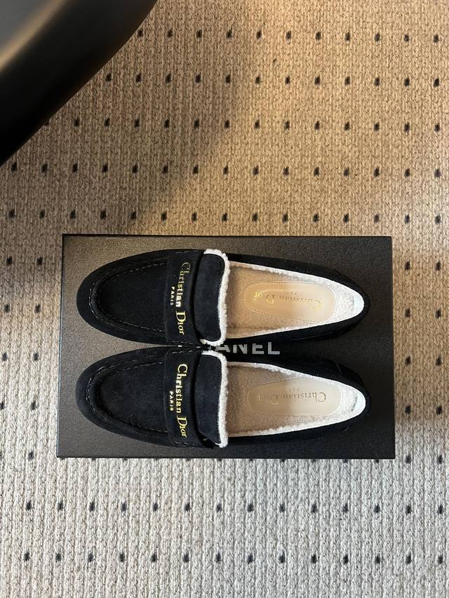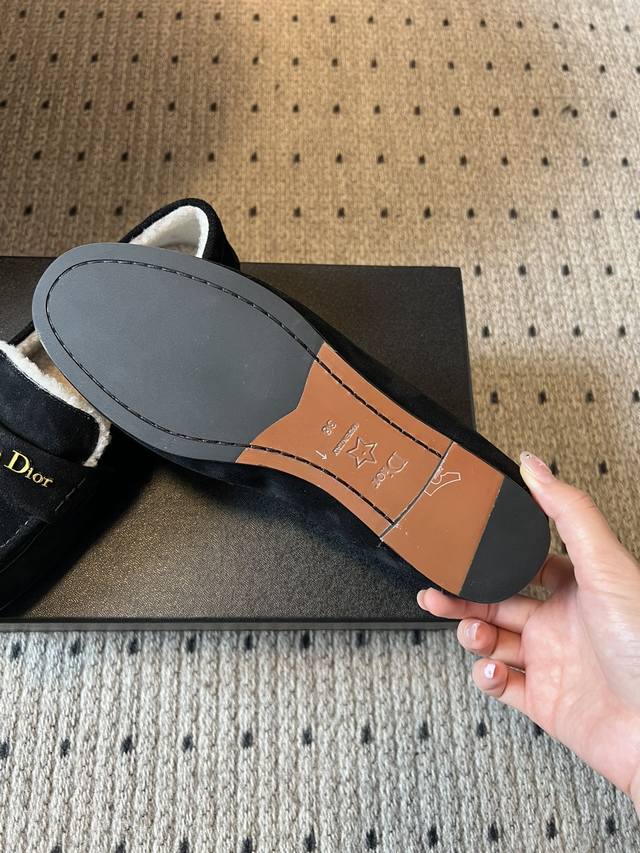 Top Quality Dior 25Ss Autumn/Winter New Style Fleece Loafers. The upper is made