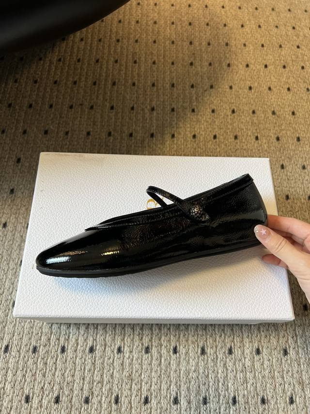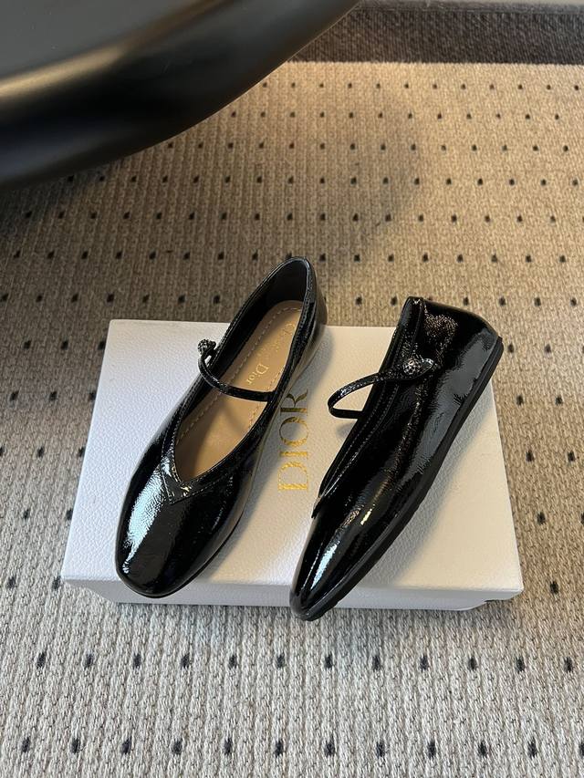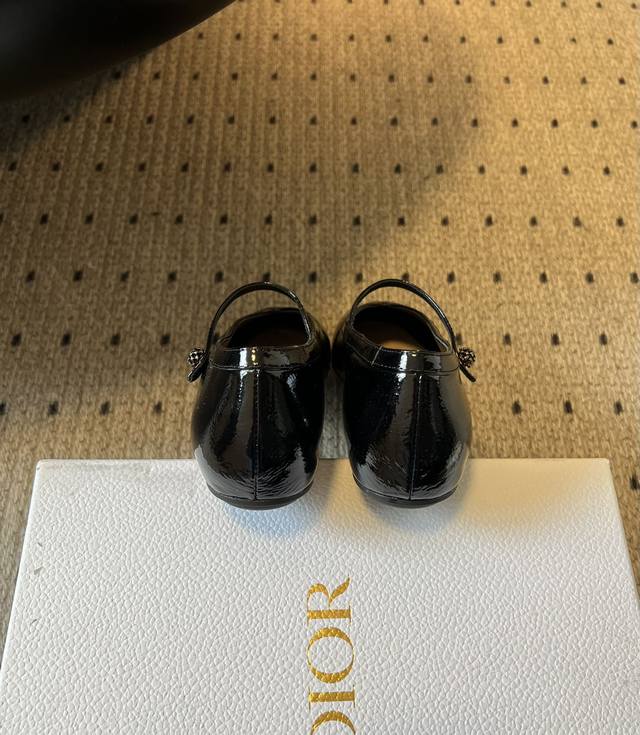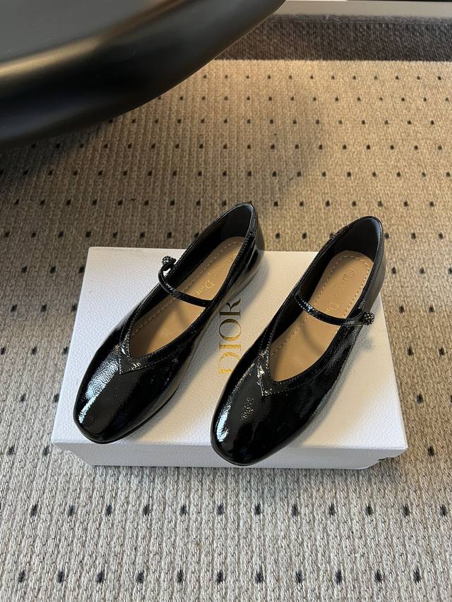 Top Quality Dior 25Ss Fall/Winter New Ballet Flats These Dior New Ballet flats are a new addition to the Fall/Winter 2025 ready-to-wear collection, exuding a fashionable feel. Made of black pleated patent calfskin, the almond-shaped toe and clean-cut upper design showcase individual style. The strap is adorned with a meticulously engraved silver metallic bead with the Cd logo, inspired by the classic Dior Tribales earrings. The soft and comfortable design, along with the padded leather insole, adds an elegant finishing touch to any casual look. Upper: Original custom pleated patent calfskin velvet Lining: Grade A sheepskin padded calfskin insole Elastic leather strap with decorative Cd metallic bead Original rubber sole | Adorned with the Christian Dior lucky star symbol Size: 35-36-37-38-39-40