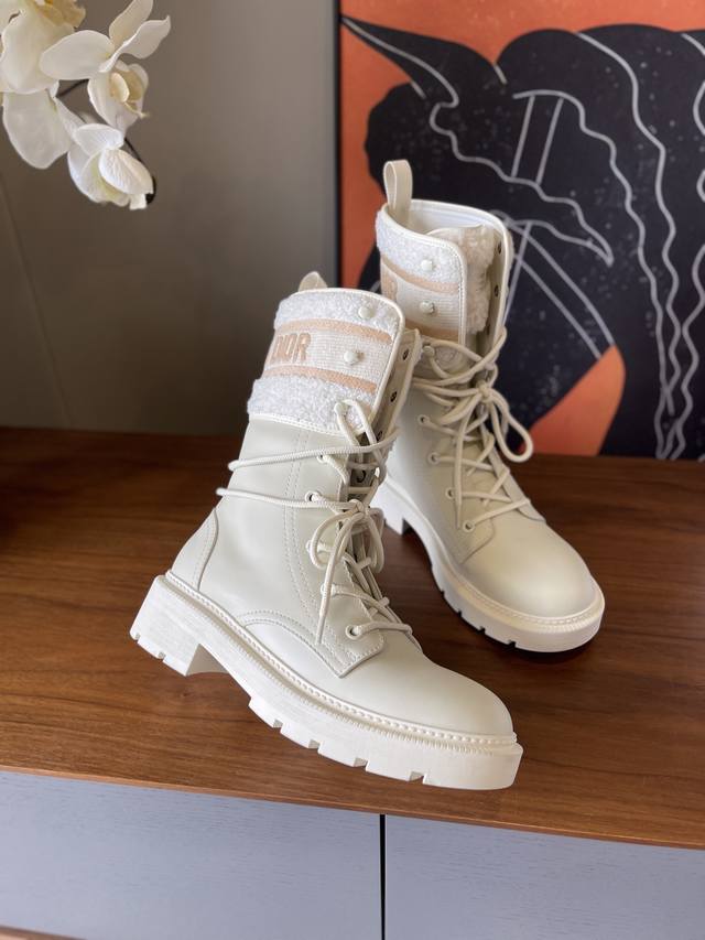 / Top Quality Dior Classic Fleece Embroidered Ankle Boots, Cowhide Upper, Cowhide