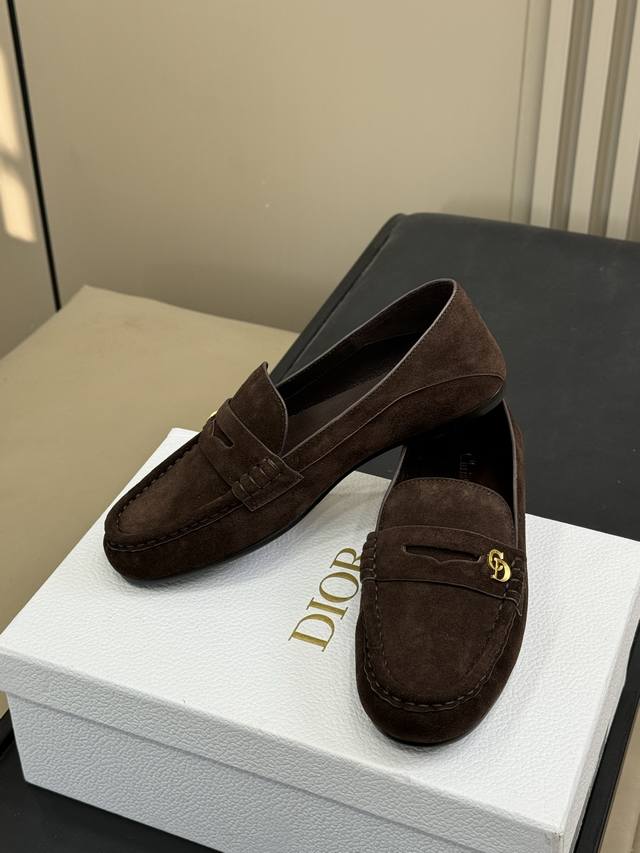 Top Quality Dior Fall/Winter 2025 Loafers - New Arrival! A very elegant piece, simple and beautiful! Made of calfskin, slightly wrinkled glossy leather, superb texture! The coffee color is perfect for autumn and winter, a versatile piece suitable for all seasons. Sizes 35-41.