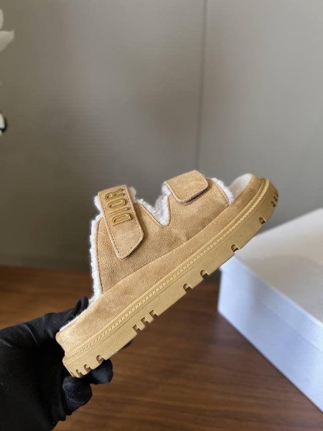 Top Quality Dior Fw25 New Arrival ~ Dior Fw25 New Arrival 2025 Autumn/Winter Exquisite Fur Slippers Original Black Size 36.1, Disassembled and Copied Simple, Casual, and Stylish ~ Comfortable and Warm, an Absolutely Exquisite Item! Top-quality products using the finest materials, for discerning ladies. Pure imported Grade A lambskin, made with a single layer of fur. Dior metal hardware logo, adjustable Velcro strap. Original textured Eva notched sole. Sizes: 35-39. Sizes 40 and 41 are custom-made and non-refundable.