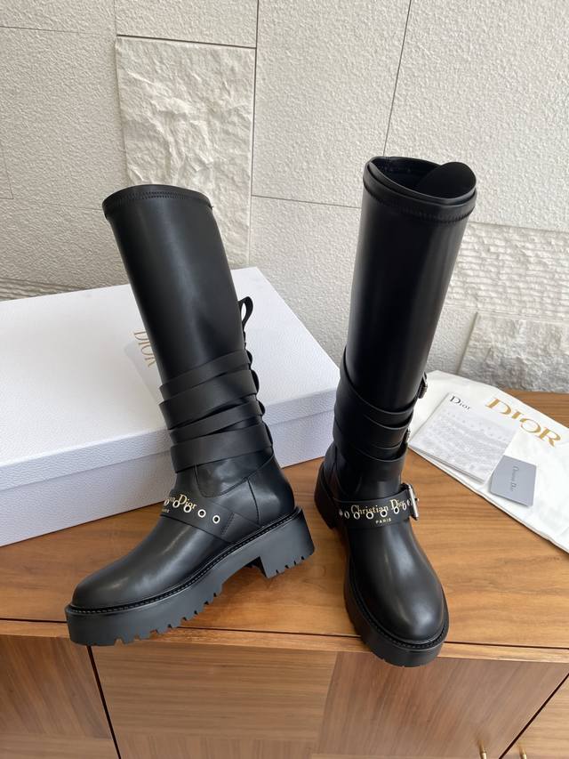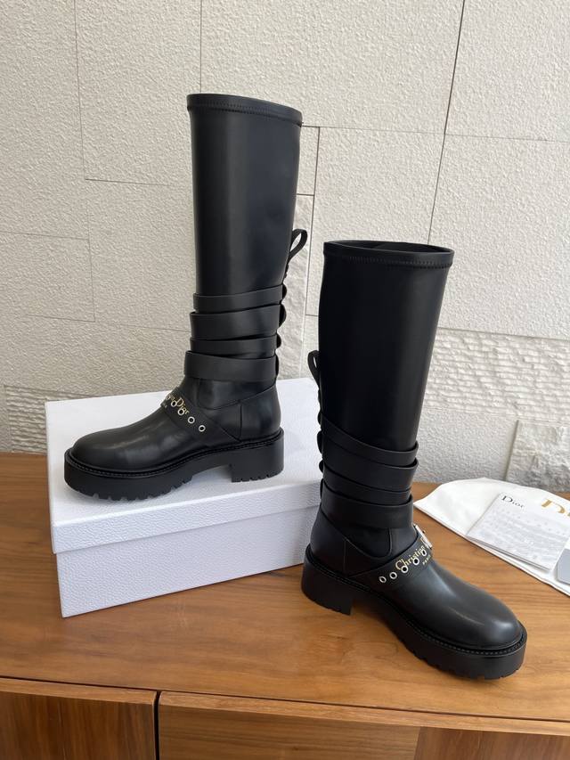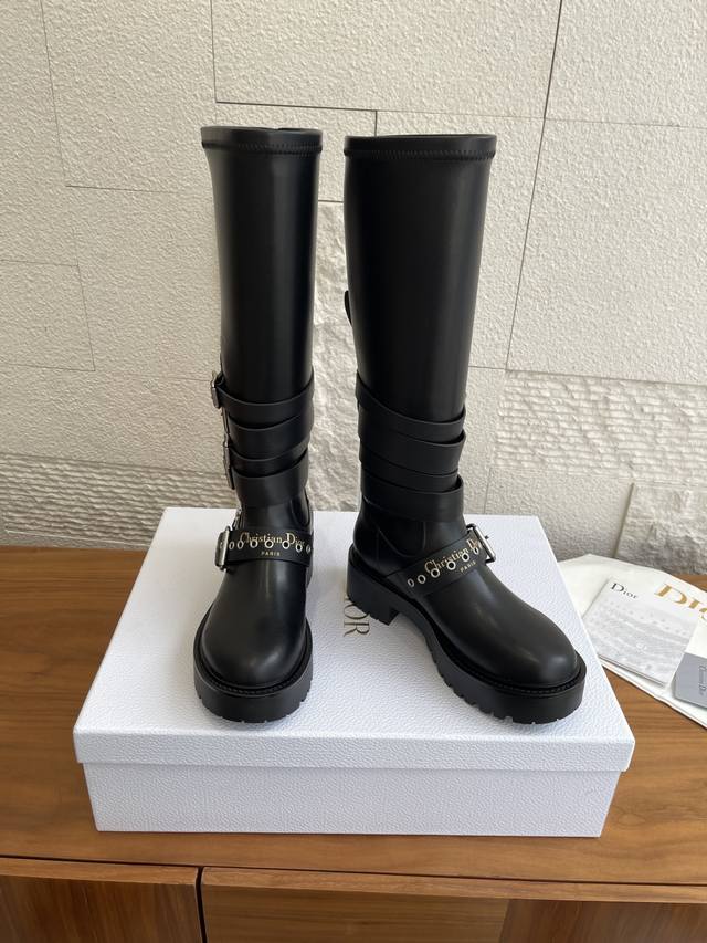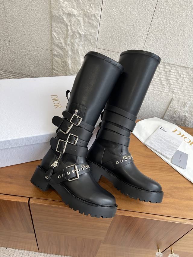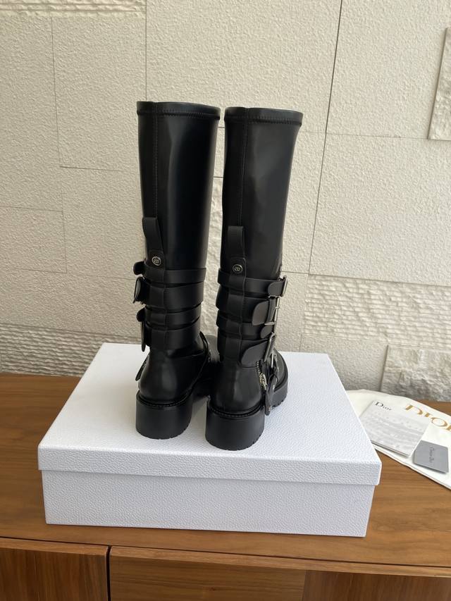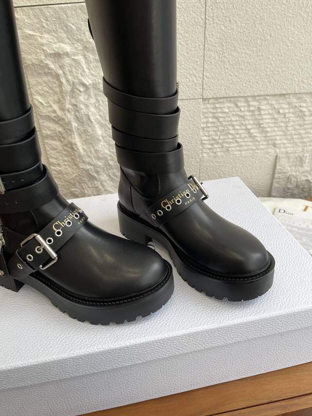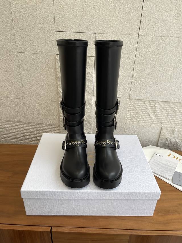 Top Version: Dior 2025 Fall/Winter New D-Fight Elastic Boot Shaft with Buckle Ankle Boots. This D-Fight ankle boot is a new addition to the 2025 Early Spring Ready-to-Wear collection, highlighting classic women's wear with a distinctive design. Crafted from high-quality cowhide and other materials, it features a leather-effect elastic boot shaft and a gold-tone Christian Dior Paris logo on the front. Easy to put on and take off, it comes with multiple decorative adjustable straps and metal buckles for added style, reflecting the fashion spirit of the runway show. The thick Eva notch sole adds a rock-and-roll touch to any look. Material: Imported calfskin; Lining: Imported cowhide; Outsole: Original mold TPU outsole; Size: 35-41 (40-41 are custom-made and non-refundable).