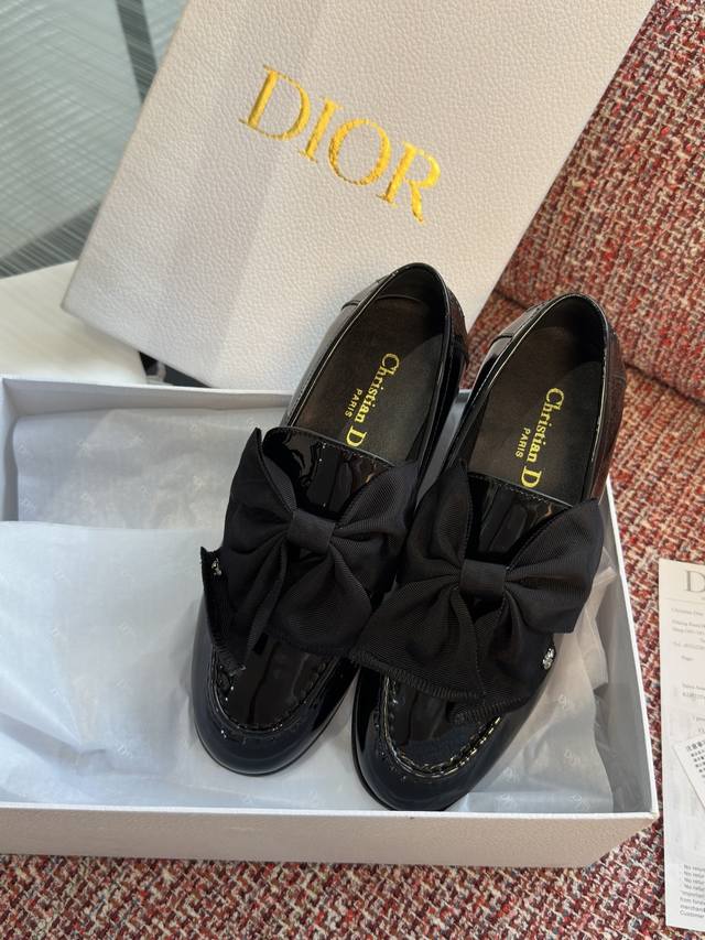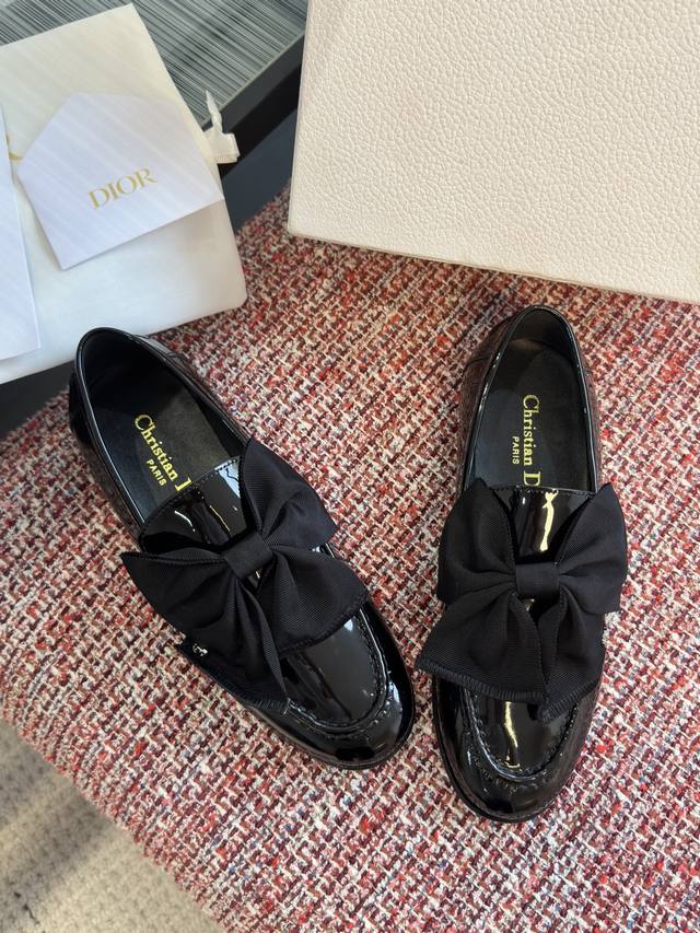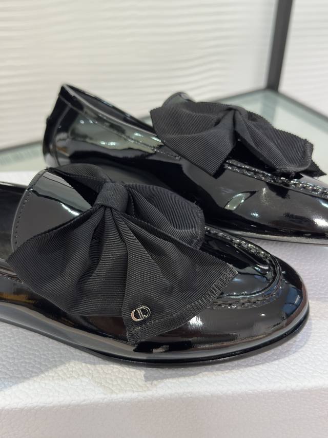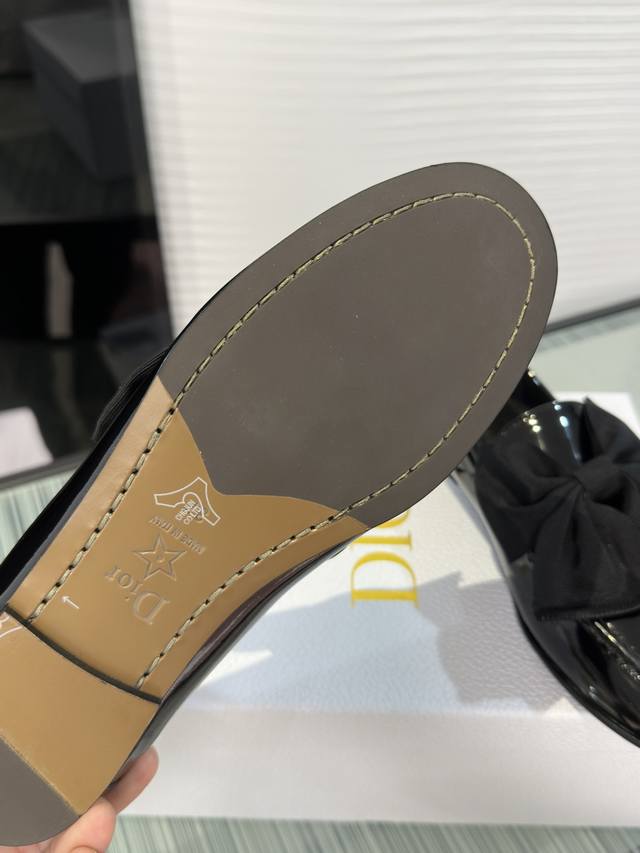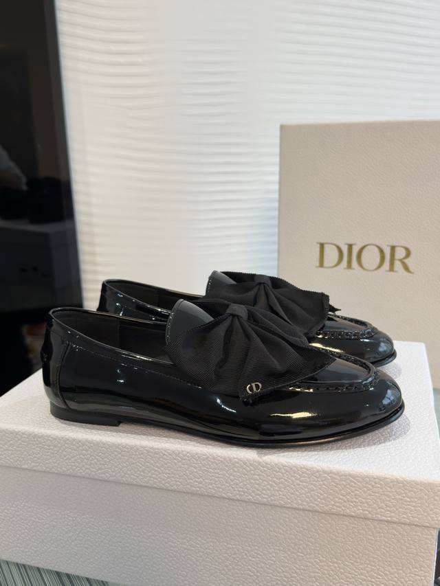 Top Version: Dior 20256 Early Spring New Issimo Bow Flat Loafers DDD These Dior Issimo loafers are a new addition to the 20256 Early Spring collection, featuring a haute couture design. The black patent calfskin upper is paired with an almond-shaped toe, adorned with an oversized black grosgrain bow and a gold-plated Cd logo. These shoes can be elegantly paired with any season's style. Metal Cd logo. The leather sole is decorated with Christian Dior's beloved star logo. DDD Material: Imported calfskin Ddd Insole: Imported goatskin Ddd Outsole: Italian imported genuine leather DDD Size: 35-41 40 41 Custom orders are non-refundable DDD
