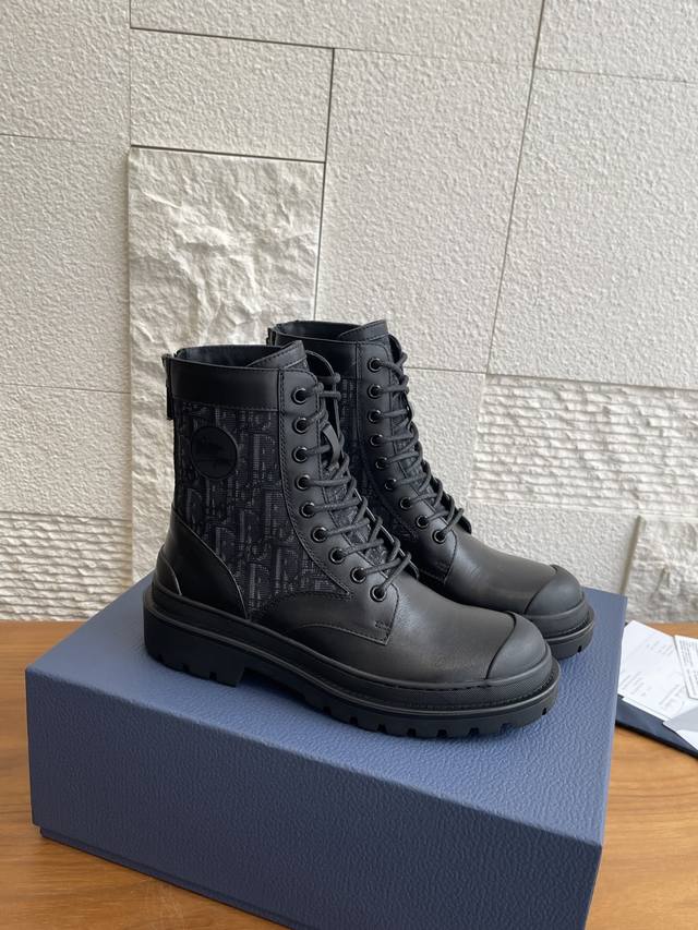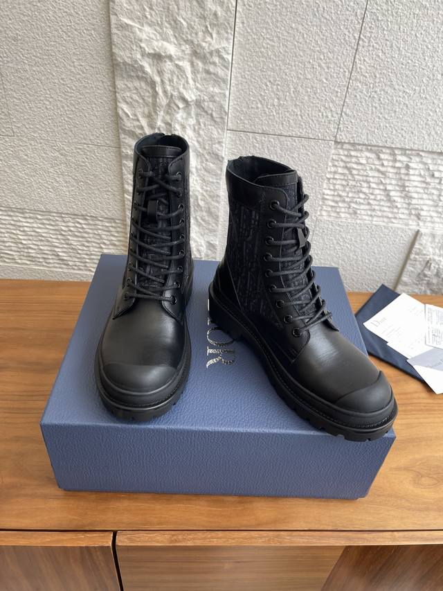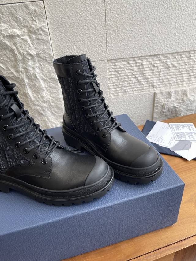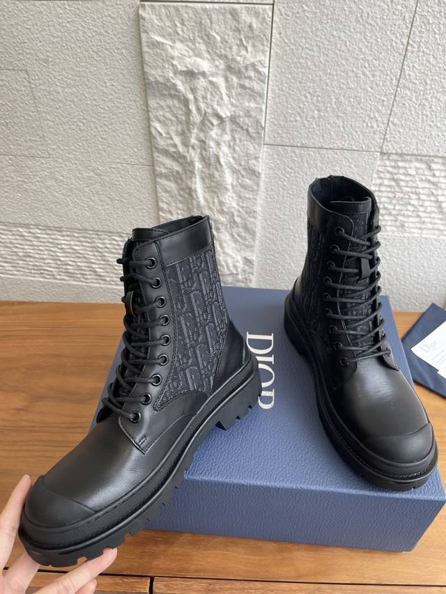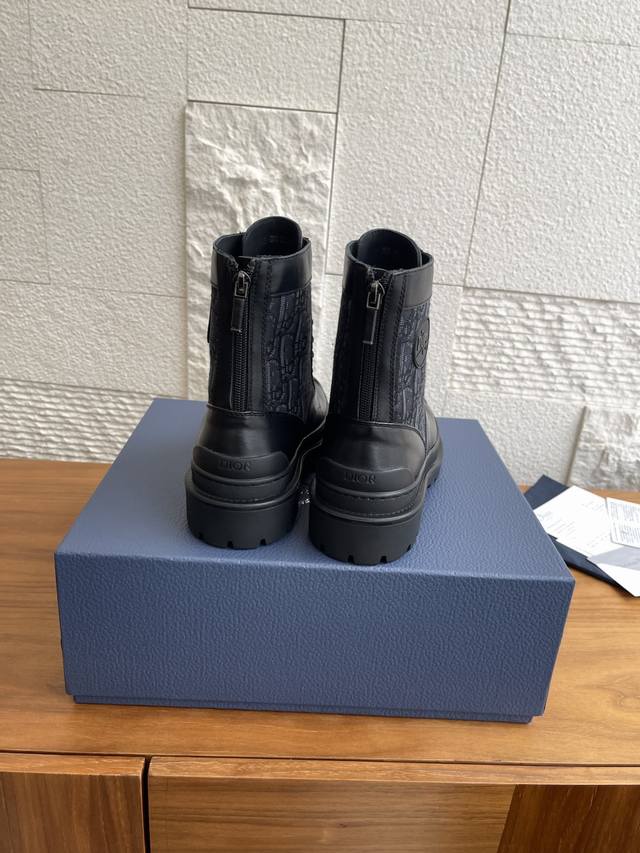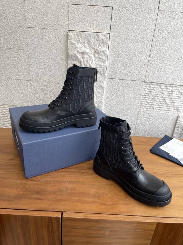 Top Version: Dior Explorer Wool Ankle Boots (Autumn/Winter) - Crafted from smooth black cowhide leather with beige and black Oblique print accents on the sides. Full sheepskin lining ensures comfortable wear. A back zip closure allows for easy on and off. Features a Dior logo patch, a notched rubber sole, and a tonal reinforced rubber toe for added sophistication. Pairs well with various seasonal items for a stylish look. Material: Original imported top-grain cowhide leather + embroidered fabric. Lining: Original imported wool lining. Outsole: Exclusive molded non-slip rubber sole. Size: 35-41 (40-41 - Custom orders are non-refundable).