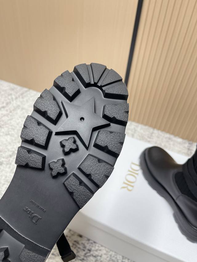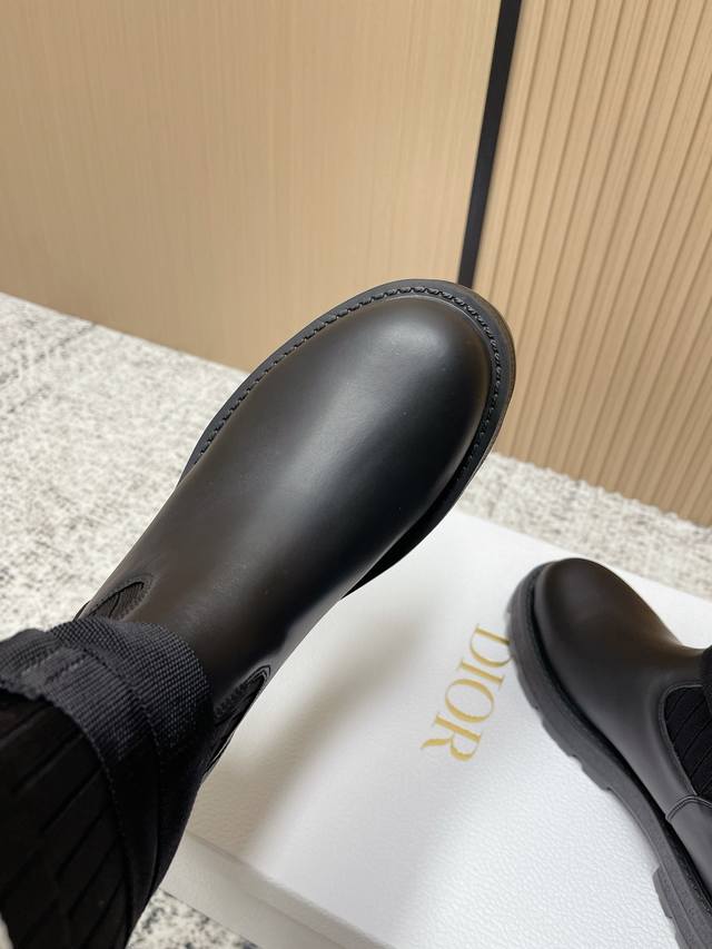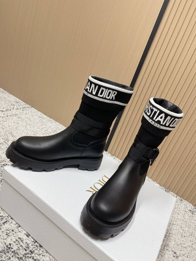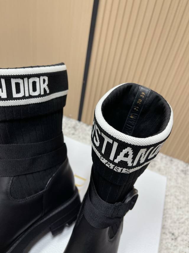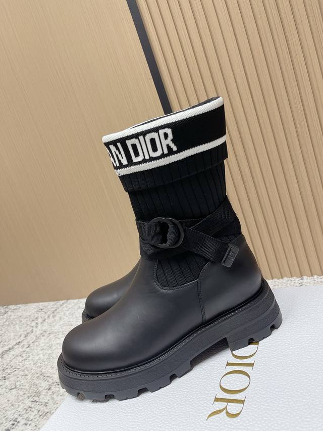 Top Version: DDD Dior New Sock Boots Ankle Boots Stretch Knee-High Boots DDD The boot body combines a leather sole with a knitted sock-like cuff. The leather part is structured and stylish, while the knitted cuff adds softness and elasticity, combining both style and comfort. A striking white "Christian Dior Paris" lettering webbing is printed on the upper of the sock cuff, enhancing brand recognition and becoming the visual focus of the look. DDD The boot body features buckle-style laces, improving practicality and adding a rugged workwear detail to the overall look; the platform sole combines a stylish effect with a retro feel. This boot is highly versatile and can be flexibly combined with clothing and accessories to suit different style needs, easily adapting to various occasions such as everyday outings, parties, or light work. DDD Upper: Cowhide Stretch Socks DDD Lining: Cowhide DDD Outsole: Original Mold Outsole DDD Size: 35-39 40 41 Sizes are custom-made and non-refundable DDD