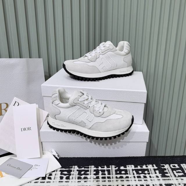 Originally purchased, developed, and manufactured, these C'est Dior sneakers have a striking and stylish design. Crafted from white cowhide leather and other materials, the upper features a black and white rubber C and D, respectively, emblazoned with the Christian Dior Paris logo. The logo-embellished tongue and lightweight two-tone sole offer exceptional comfort, showcasing a sporty style. They add a stylish touch to any casual look.
