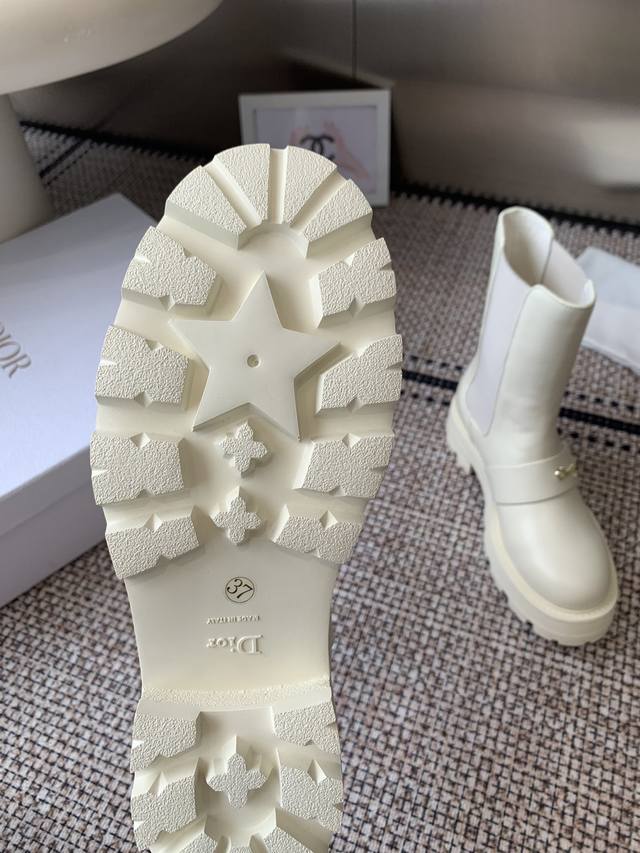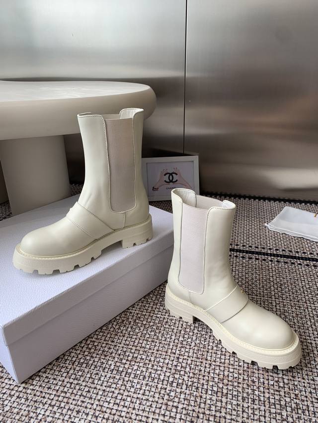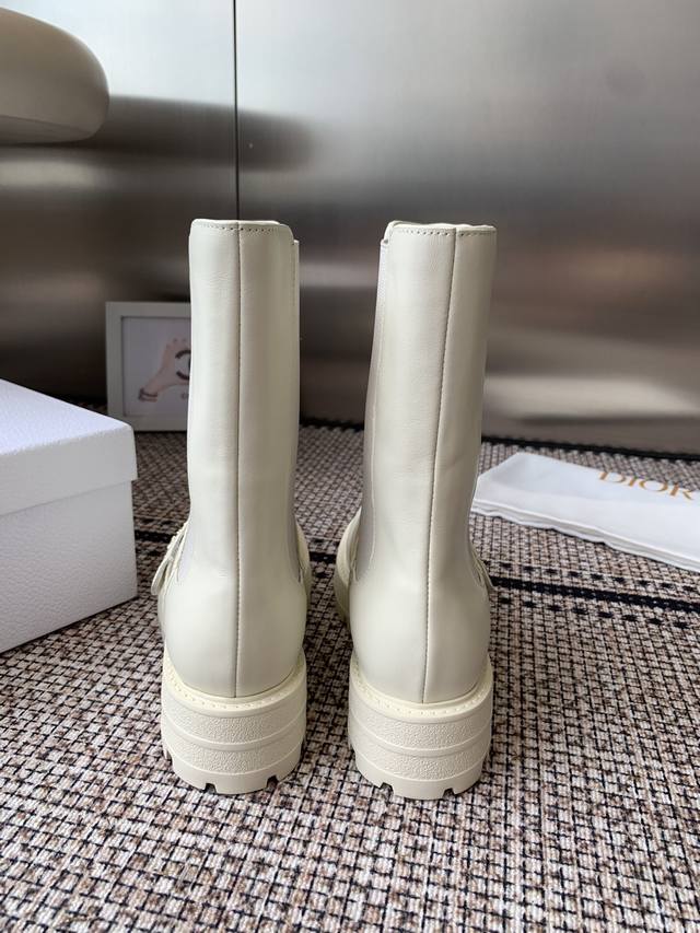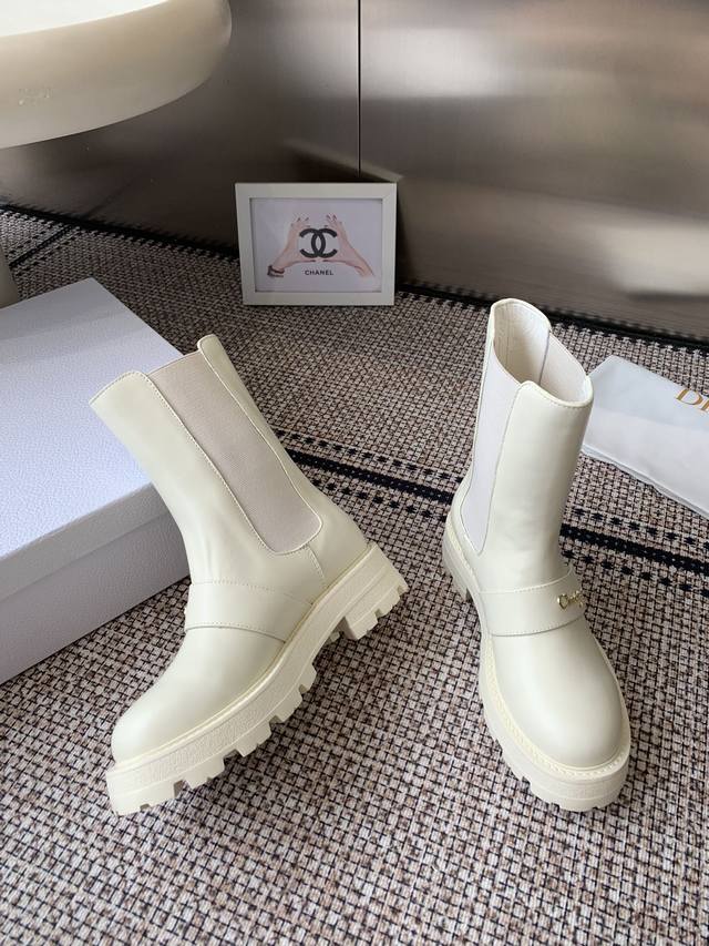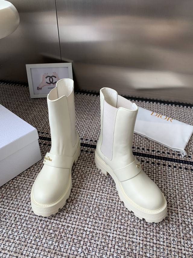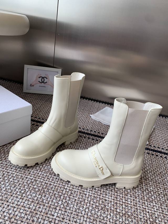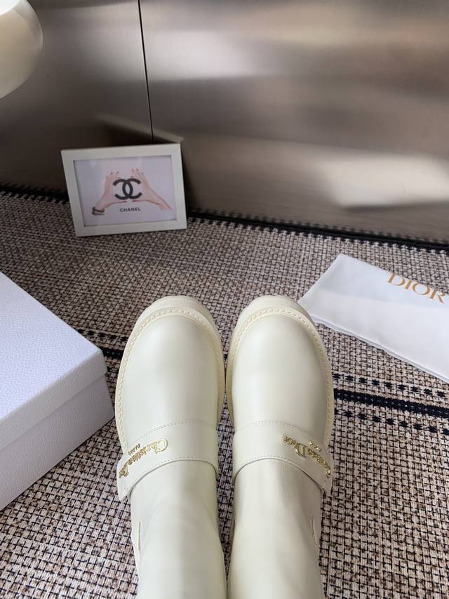 Top-of-the-line Dior 2025 Fall/Winter new D-Quest series punk-style Chelsea stretch and nude women's boots, celebrity-style, CD logo hardware belt buckle motorcycle boots, low-heeled, thick-soled, round-toed, slip-on knight boots. Upper: imported full-grain calfskin. Lining: water-dyed sheepskin. Lining: insoles. Original TPU outsole with original mold hardware buckle. Sole thickness: 3.5cm. Sizes: 35-41. 40.41 made to order.