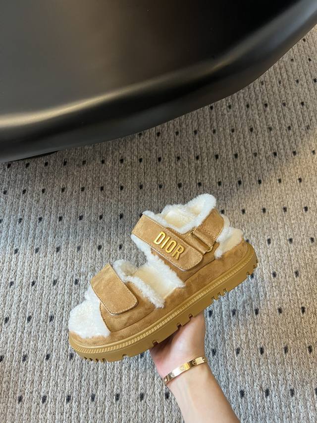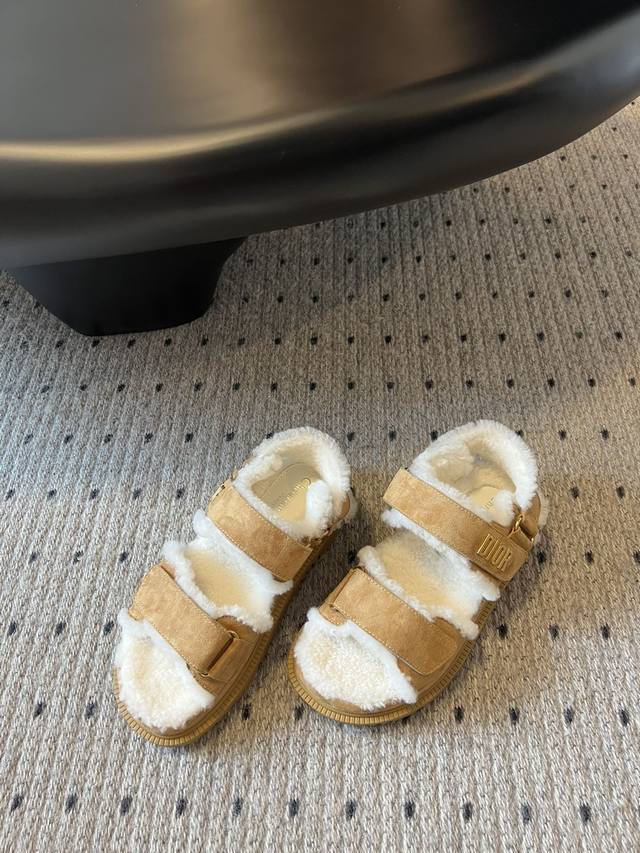 Top-of-the-line Dior two-strap furry slippers! Dior's super cute furry slippers are here! These latest from the same fabric are a must-have for fashionistas and the ultimate comfy outfit for the lazy. They look stunning with or without socks! Add 4cm to your height with no hassle! Comfortable and versatile! Made from pure imported A-grade lambswool, they feature a leather and fur design. Metal Dior hardware, adjustable Velcro straps, and original textured EVAN-cut soles. Sizes: 35-39, 40, 41. Made to order, no returns or exchanges.