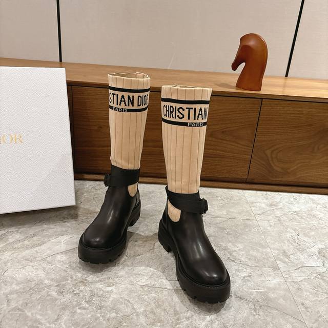 Top-quality Dior 2026 new style combat boots, Martin sock boots, super cool and stylish. Crafted with multi-layered straps and buckles, showcasing a trendy and avant-garde style. Handsome and stylish, exuding sporty fashion. Material: Original custom cowhide elastic socks. Lining: Cowhide. Outsole: Original molded rubber sole. Size: 35-39. Size 40 is custom-made and non-refundable.