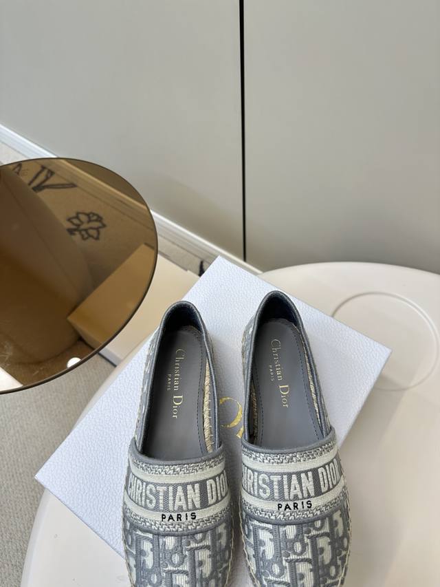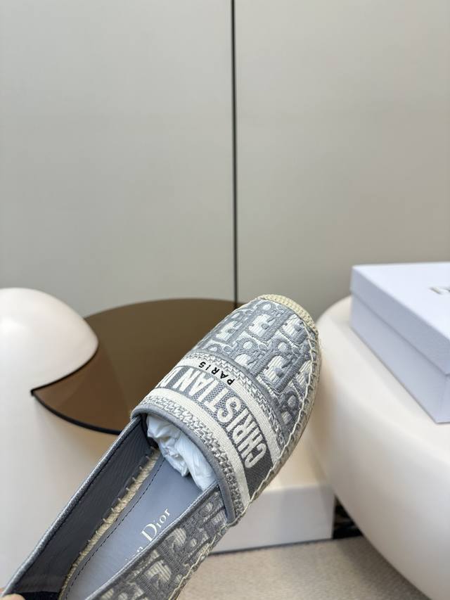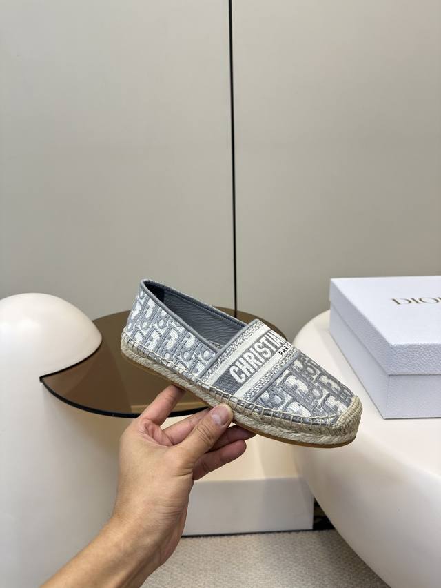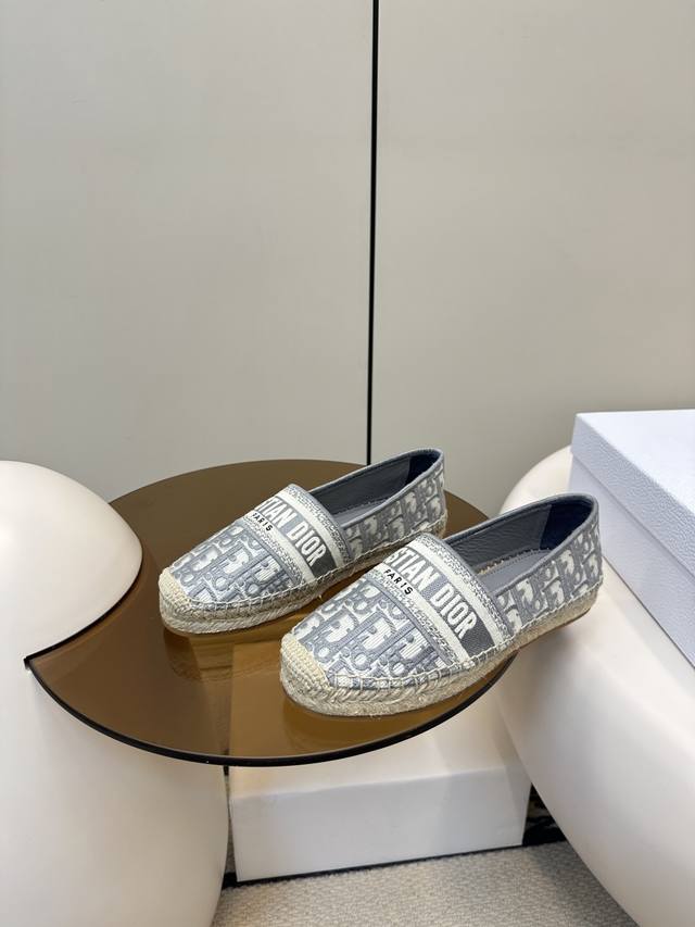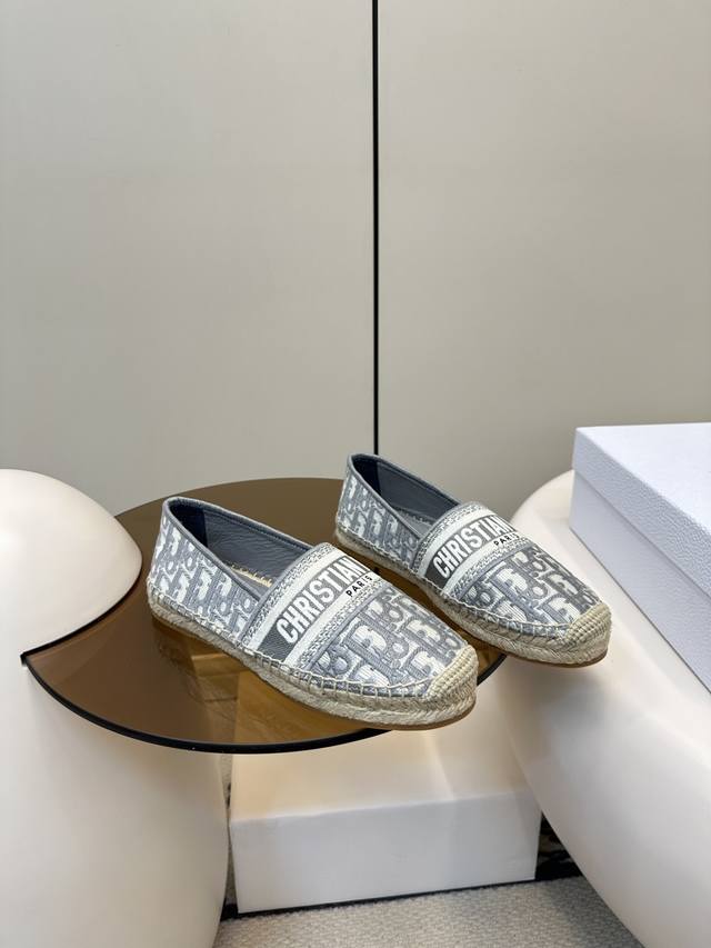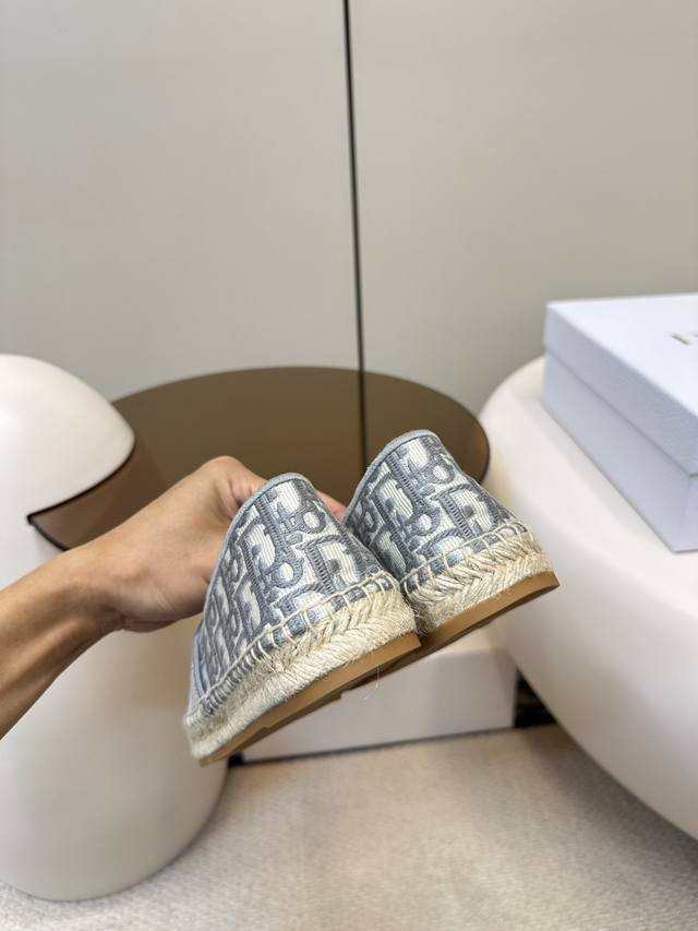 Top-quality original single item with airplane box. Dior 2025 early spring new padded embroidered espadrille shoes. Popular online style. The upper features padded embroidered "D" lettering, retro yet trendy. Simple and stylish. Original 1:1 custom embroidery on the upper. Original 1:1 molded straw rope sole. Mixed sheepskin lining. Sheepskin insole. Sizes 35-40, 40, 41, 42 custom-made.