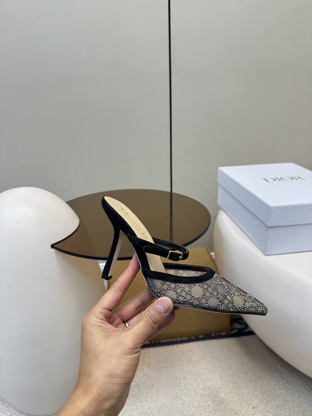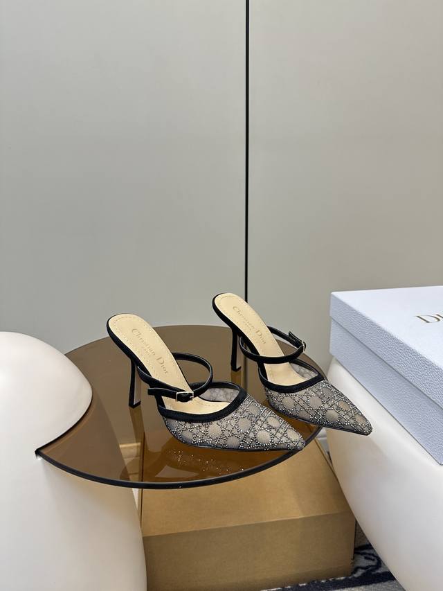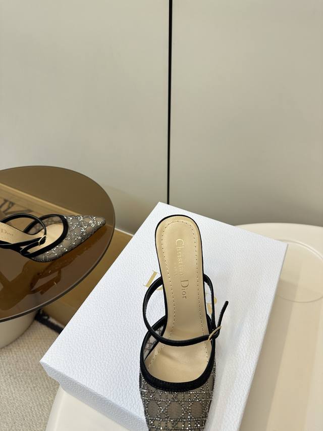 Top-quality original single item with airplane box. Dior | New Dior kitten heel sandals with hot-fix rhinestones. Classic Dior cannage pattern. A must-have fashion item with extremely high comfort. Mesh fabric + hot-fix rhinestones. Original single-piece custom-made sheepskin lining. Italian genuine leather sole. Heel height 5.5-9.5cm. Size: 35-40. 40, 41, 42 are custom-made.