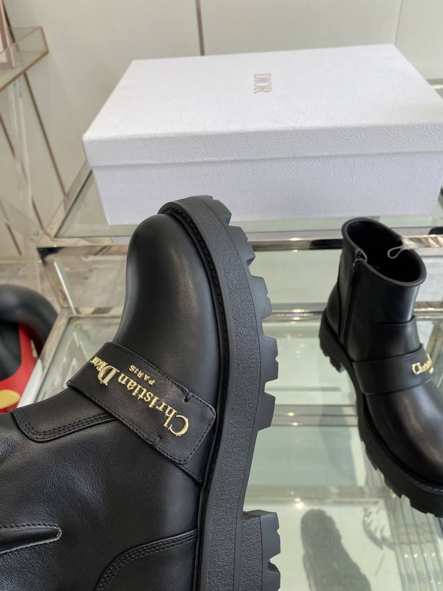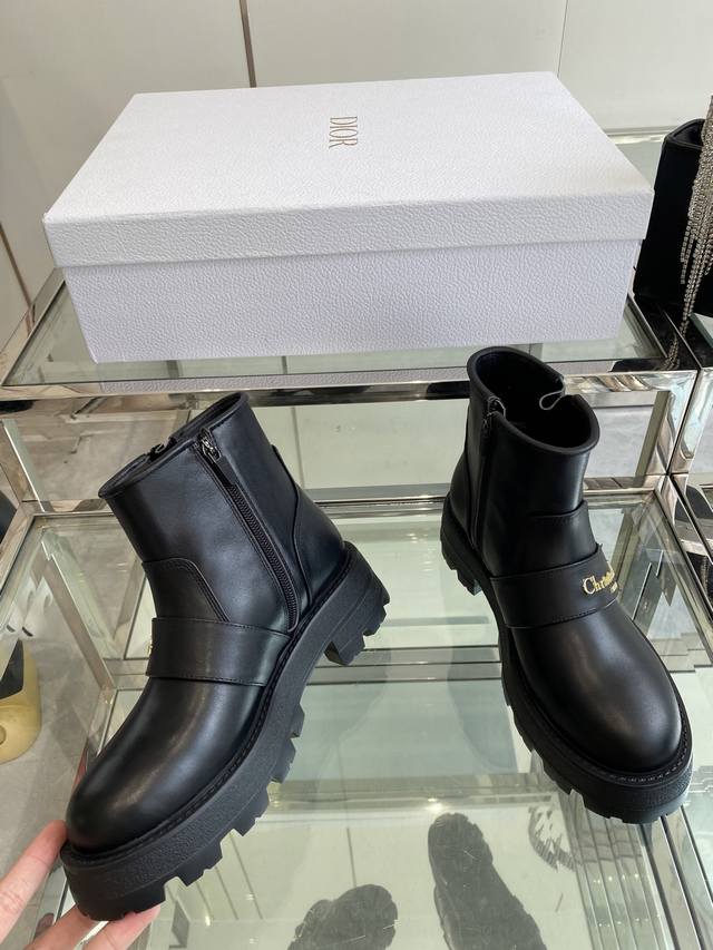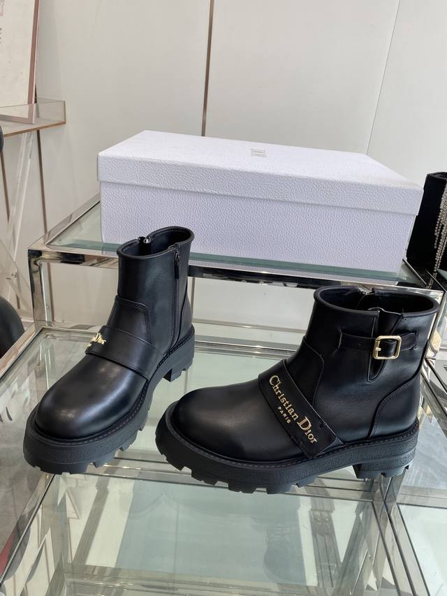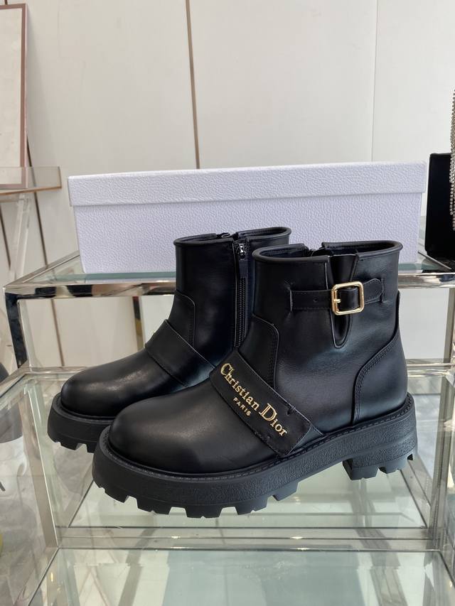 Top-tier Dior 2025 Autumn/Winter Brogue Boots. A timeless riding boot style, showcasing classic design. This top-tier version is crafted from supple black calfskin, creating a casual yet elegant look. Side zipper for easy on and off. Made with top-quality imported calfskin, the entire boot shaft is leather. Water-dyed calfskin lining. Original mold, 3.5cm heel height. Sizes: 35