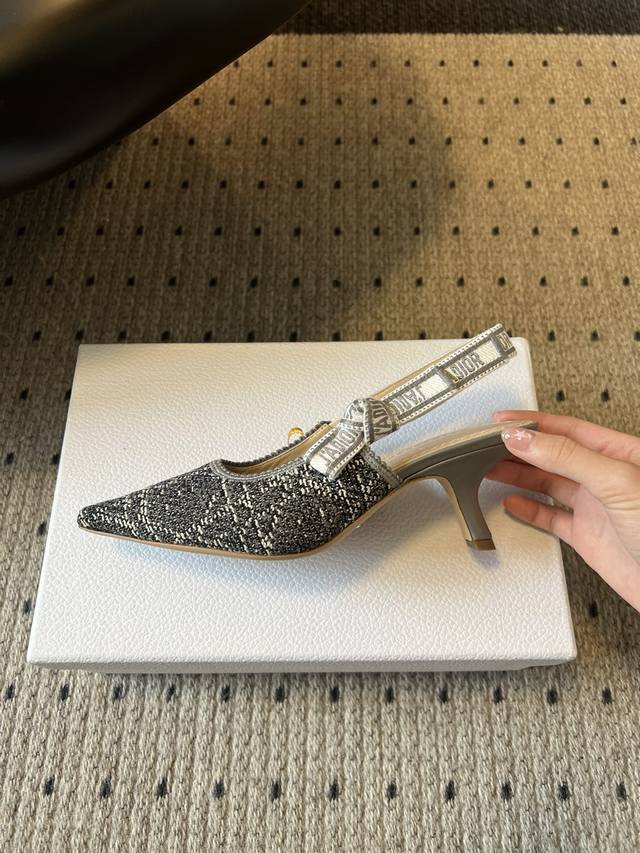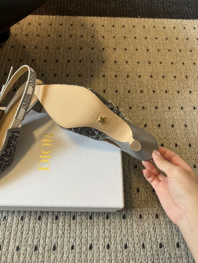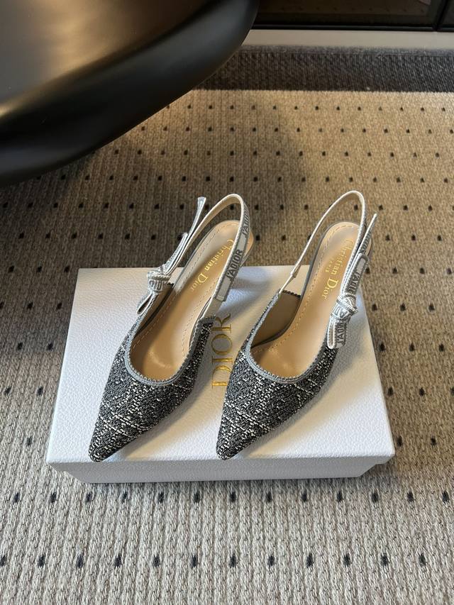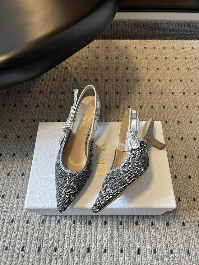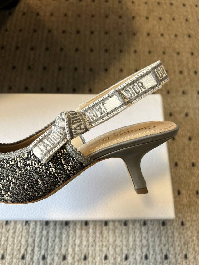 Top-tier Dior classic bow high heels. A masterpiece showcasing Dior's exquisite craftsmanship. Meticulously crafted with black and white embroidery. Two-tone J'Adior embroidered ribbon adorned with a flat bow. Features a two-tone J'Adior logo embroidered ribbon, bow, and elegant kitten heels in 1.0 cm, 6.5 cm, and 10 cm sizes. Two-tone cotton J'Adior embroidered ribbon, flat bow, low-cut design, and a leather sole with serrated edges adorned with Christian Dior's lucky star symbol. Upper: Embroidered fabric; Lining: Cowhide; Outsole: Genuine leather; Size: 35-40 (34, 40, 41, 42). Custom orders are non-refundable.
