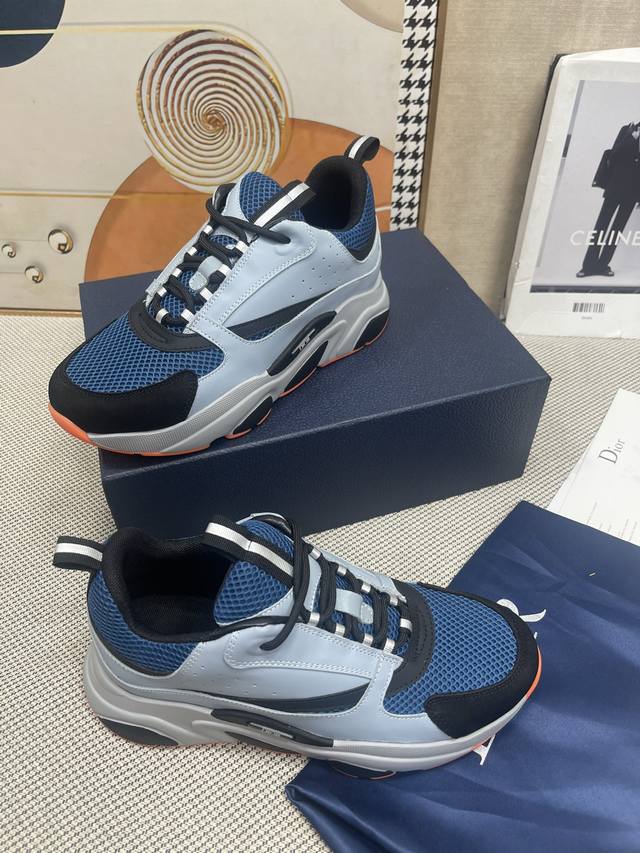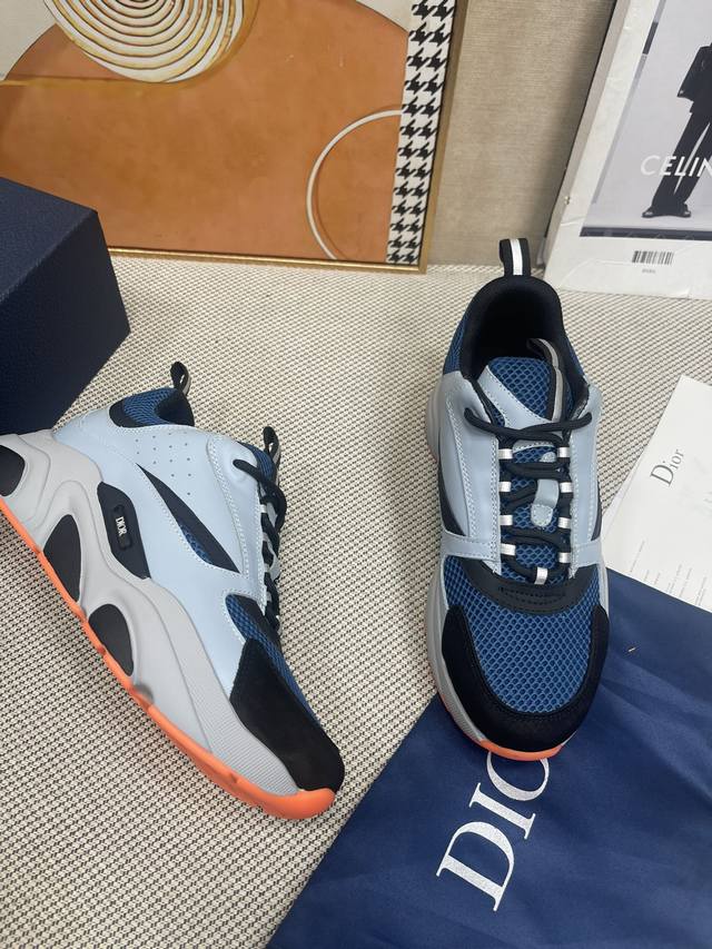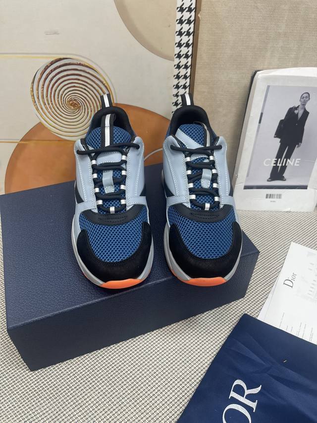 Top-tier Dior Homme Sneaker B22 Couple's Dad Shoes. Featuring a knitted 3M reflective leather upper, a mixed color design, and a lightweight, durable outsole. The tongue and sides are printed with the logo. The 3M reflective technology combined with the contrasting materials creates a stylish look. The original sole is lightweight, comfortable, and provides added height. The overall lines are smooth and not bulky. Multiple color combinations are very dynamic and fashionable. Sizes: Women's 35 40, Men's 39-45 38 46. Custom orders are non-refundable. 4730 Custom orders are non-refundable.