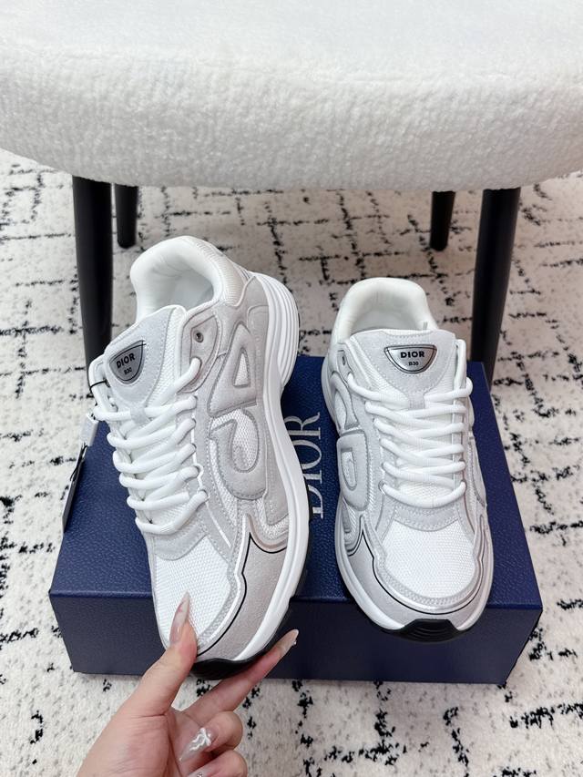 Top-tier version DDD Dior 25 latest colorway B30 series reflective CD casual dad sneakers DDD Original version purchased for 11740, developed and manufactured brand new B30 sneakers, following the retro market trend, Dad Shoes style. The Dior logo on the tongue also indicates that this shoe is the B30 model! The B30 uses fine leather and mesh materials to splice the upper, and the prominent letters Cd on both sides of the shoe indicate its identity. Many lines outline the details of the shoe body, making the shoe look less monotonous and full of retro style. Comes with exquisite packaging from the store DDD Material: Original custom technical material + mesh DDD Lining: Custom breathable lining DDD Outsole: Original mold Ip foam + TPU outsole DDD Sole thickness: 3.5Cm DDD Size: #Men's 39-46 46 custom-made, no returns or exchanges DDD