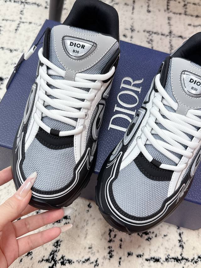 Top-tier version DDD Dior 25 latest colorway B30 series reflective CD casual dad sneakers DDD Original version purchased for 11740, developed and manufactured brand new B30 sneakers, following the retro market trend, this Dad Shoes style shoe features the Dior logo on the tongue, clearly indicating it's a B30 model! The B30 uses a combination of fine leather and mesh materials for the upper, with prominent "Cd" lettering on both sides to identify it. Multiple lines and details on the upper add visual interest and a retro feel. Comes with exquisite boutique packaging DDD Material: Original custom technical material + mesh DDD Lining: Custom breathable lining DDD Outsole: Original molded Ip foam + TPU outsole DDD Sole thickness: 3.5cm DDD Size: #Men's 39-46 46 custom-made, no returns or exchanges DDD