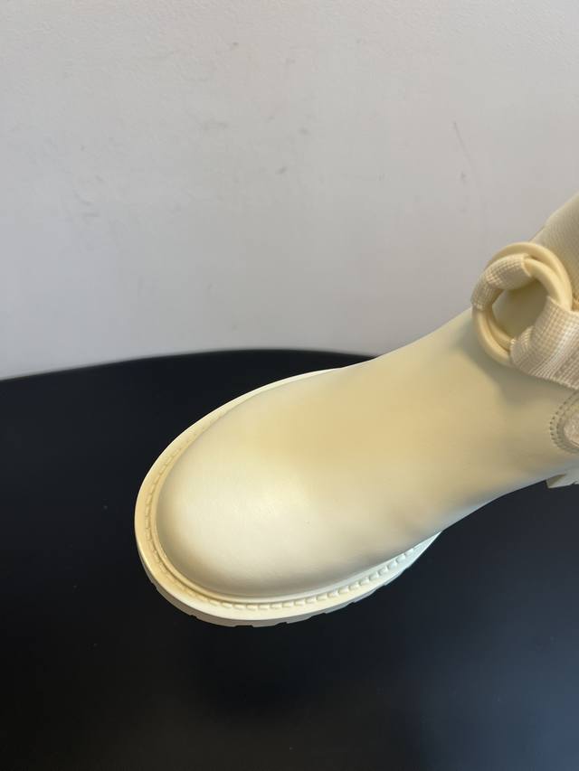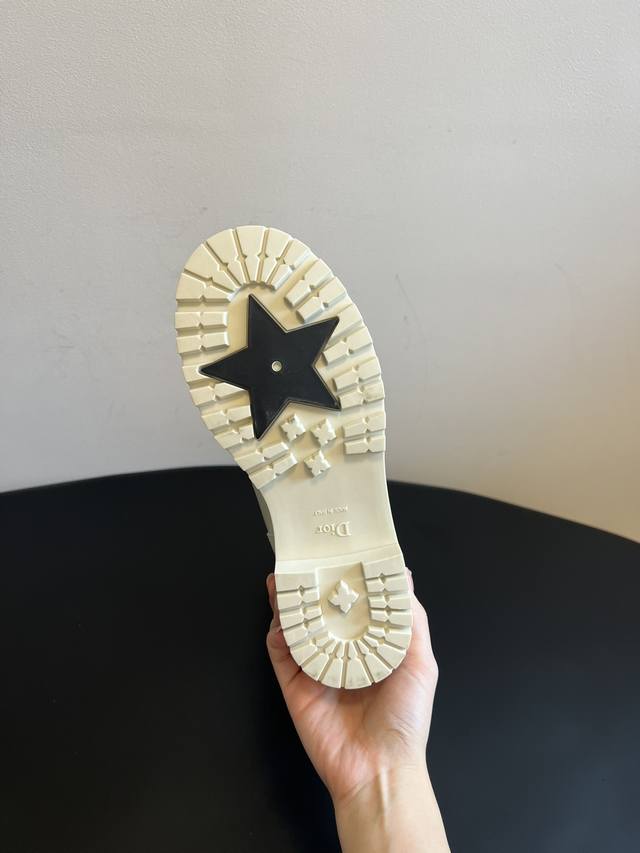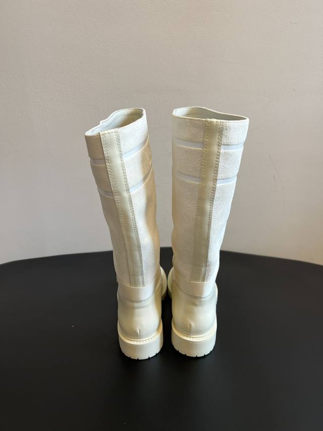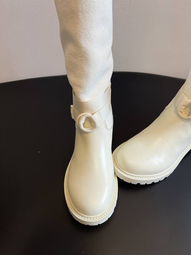 ). These boots blend retro and modern styles, featuring a prominent "Christian Dior" logo on the shaft for high recognizability. Buckle details add a workwear touch and sophistication. Made with premium leather, some styles have a plush lining for both texture and warmth; the thick sole with anti-slip treads ensures stability and practicality. Pair them with a fitted wool skirt or straight-leg trousers, layered with a long coat or trench coat for an elegant and sophisticated look. Choose a style with a plush lining, pair it with an over-the-knee sweater dress, and top it with a fur coat for both warmth and luxurious flair.