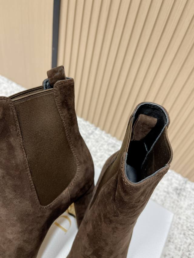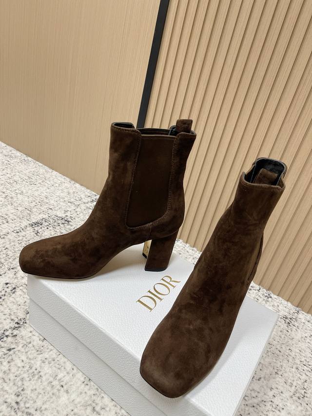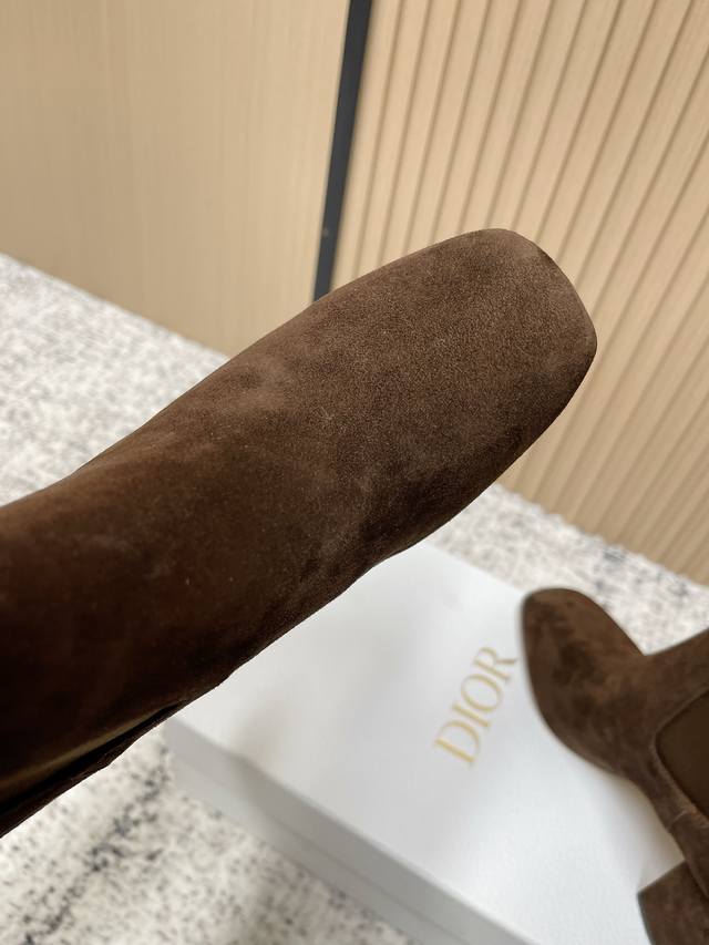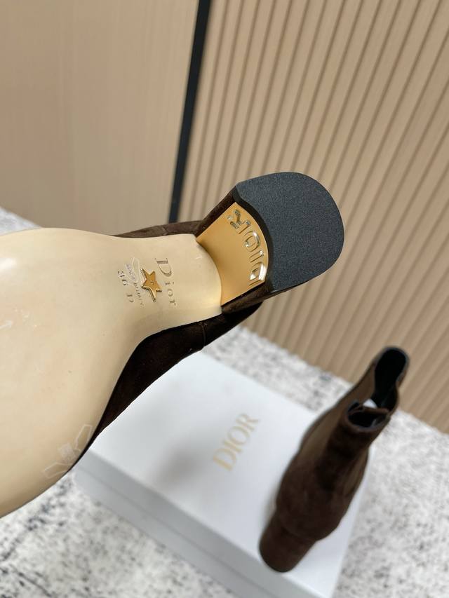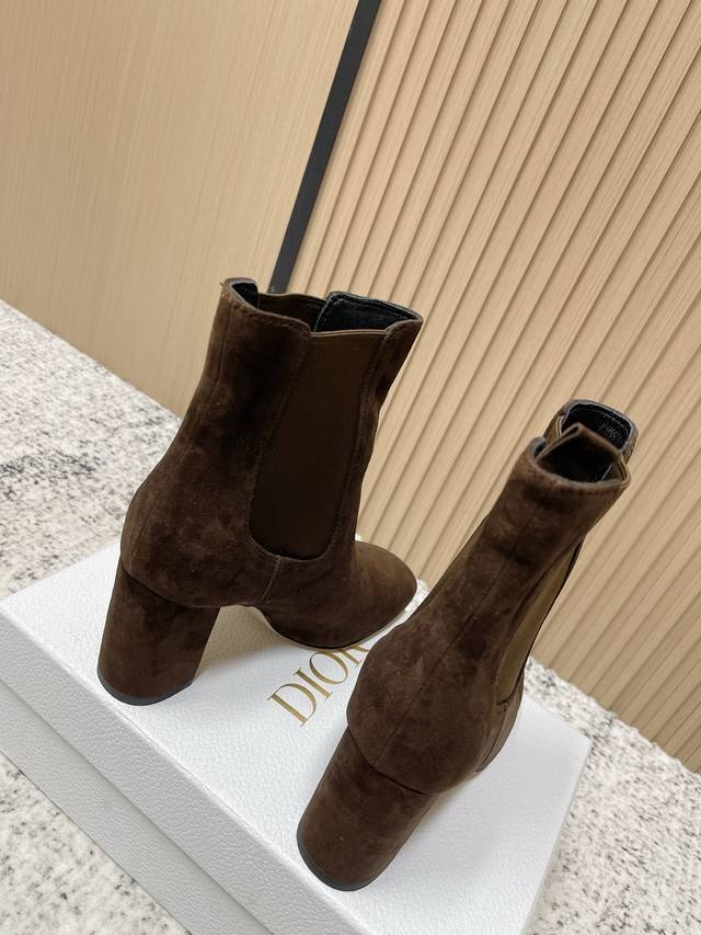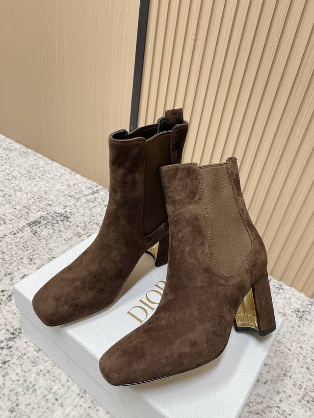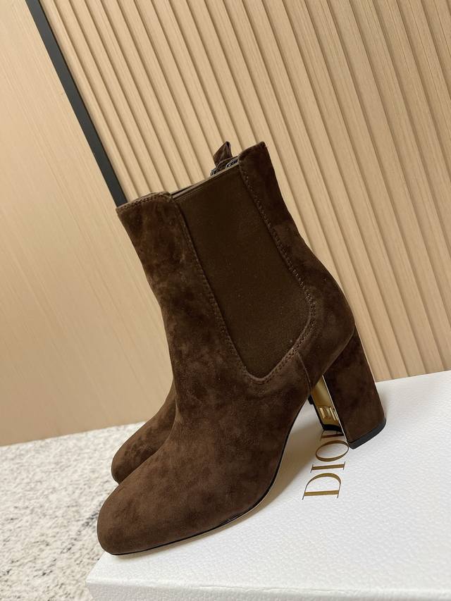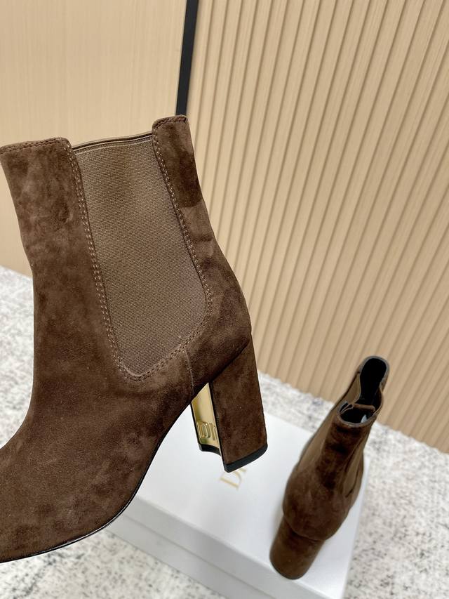 Top-tier version: Dior D-Art 2025 Autumn/Winter New Heeled Boots Series Metal Letter Heel Ankle Boots Elastic Chunky Heel Short Boots Cd Stretch High Boots Riding Straight Boots