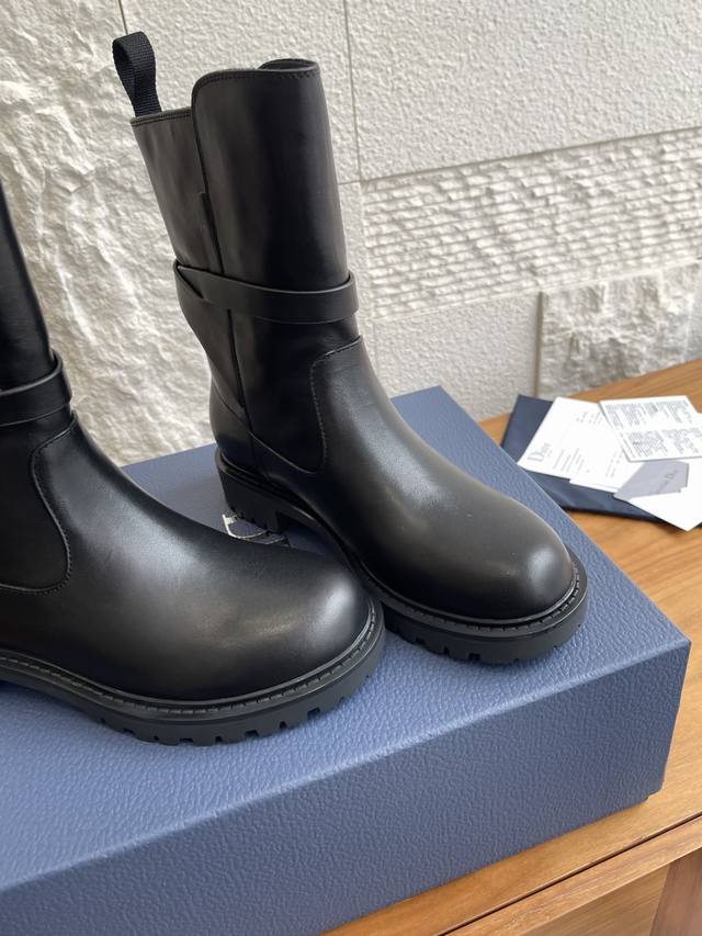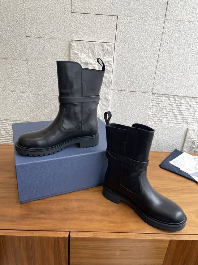 Top-tier version: Dior Fall/Winter runway workwear mid-calf boots, highly recommended by celebrities and influencers. The upper is made of original cowhide, with a custom-made boot shaft. The lining is made of original imported cowhide, and the hardware is imported from Italy. Crafted with unparalleled exquisite workmanship through multiple processes. Original mold TPU outsole. Sizes: 35-41 (40-41). Custom orders are non-refundable.