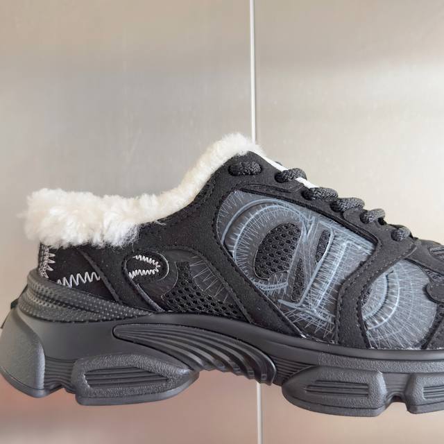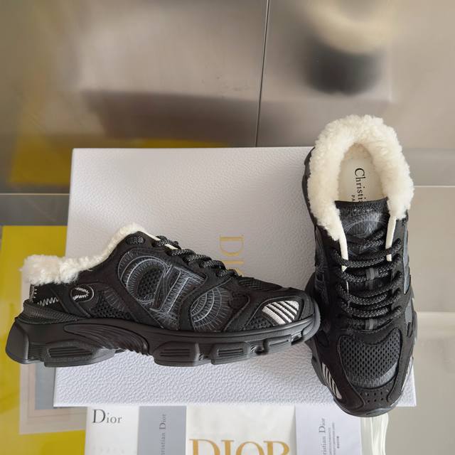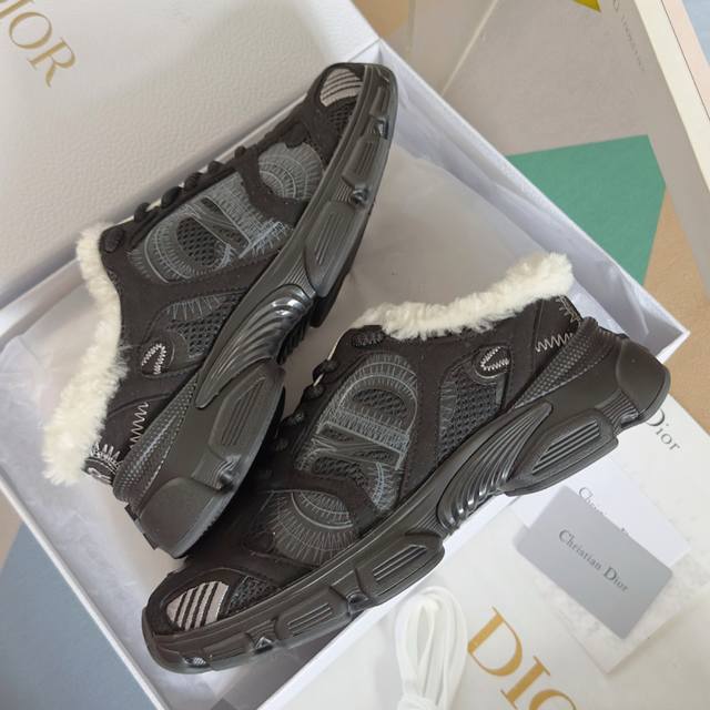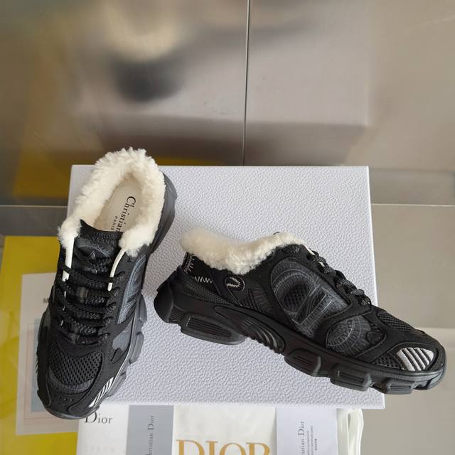 Top-tier version: Women's Dior Chrono series casual sneakers/dad shoes. This Dior Chrono sneaker is a new product from the 2025 Autumn collection, reinterpreting running shoes with an open-heel design, showcasing Dior's haute couture style. White mesh fabric is paired with silver and white laminated leather-effect panels, while classic details such as the Cd logo on the sides, star patches on the tongue, and the Dior logo on the heel highlight its style. It features two-tone laces, a lightweight sole with a star pattern, and can create a casual look suitable for all seasons. Comes with exquisite boutique packaging. Material: Original imported top-grain cowhide + mesh. Lining: Original custom-made warm genuine wool. Sole: Original molded anti-slip TPU material. Sole thickness: 4.5cm. Size: Women's 35-41.