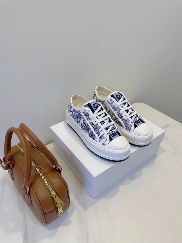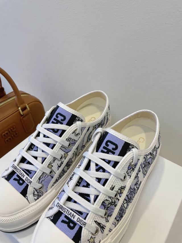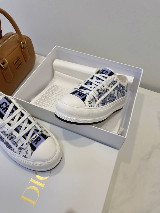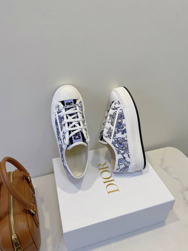 Upgraded top-tier high-end version, 1:1 replica of the boutique version, with exquisite details and lines! Dior 2025'Ss Sneakers. Italian classic craftsmanship fully launched, comparable to trendy canvas shoes. Original hollow glue environmentally friendly method, smooth and natural sole edges, even and meticulous stitching, one-piece injection molding for the insole, no glue bonding. Outsole: Original molded rubber sole. Upper: Imported twill canvas. Lining: Top-grade sheepskin. Insole: Silk cowhide. Sizes: 35-40. Original boutique packaging.
