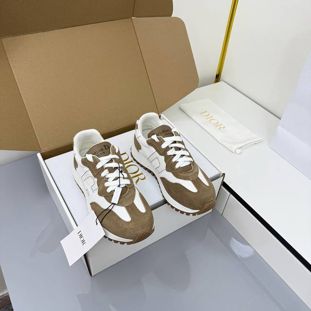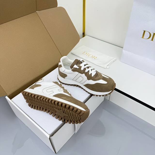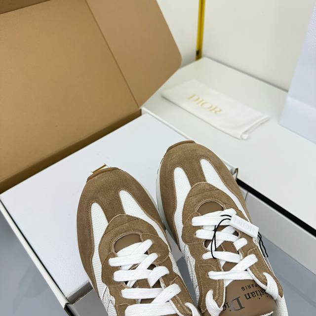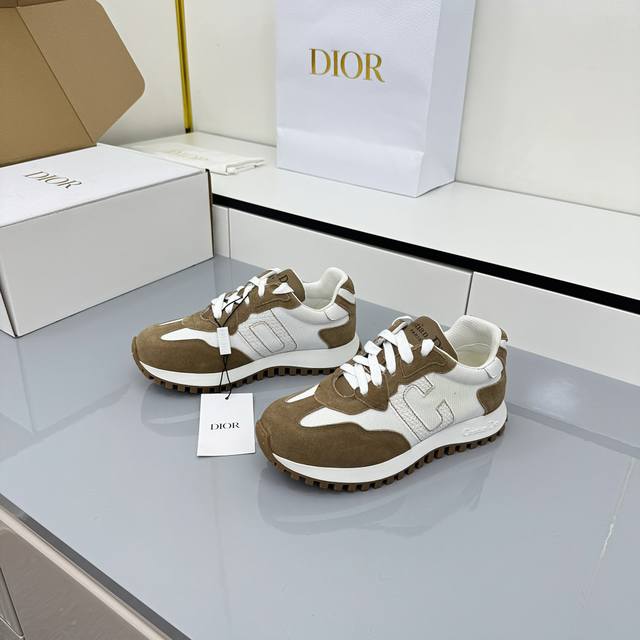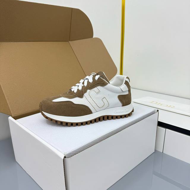 2025 New C'est Dior Sneakers, featuring a C on the left and a D on the right to form Dior's Cd logo. Understated luxury, lightweight and comfortable, with a thick sole for added height. White mesh knit fabric paired with imported cowhide and imported suede leather, TPU outsole. Sizes 35-41 available in four colors.
