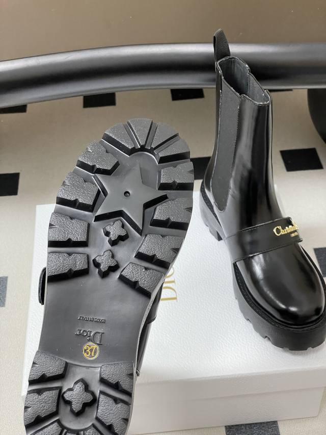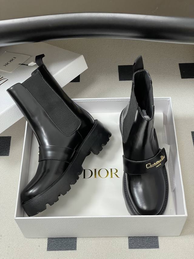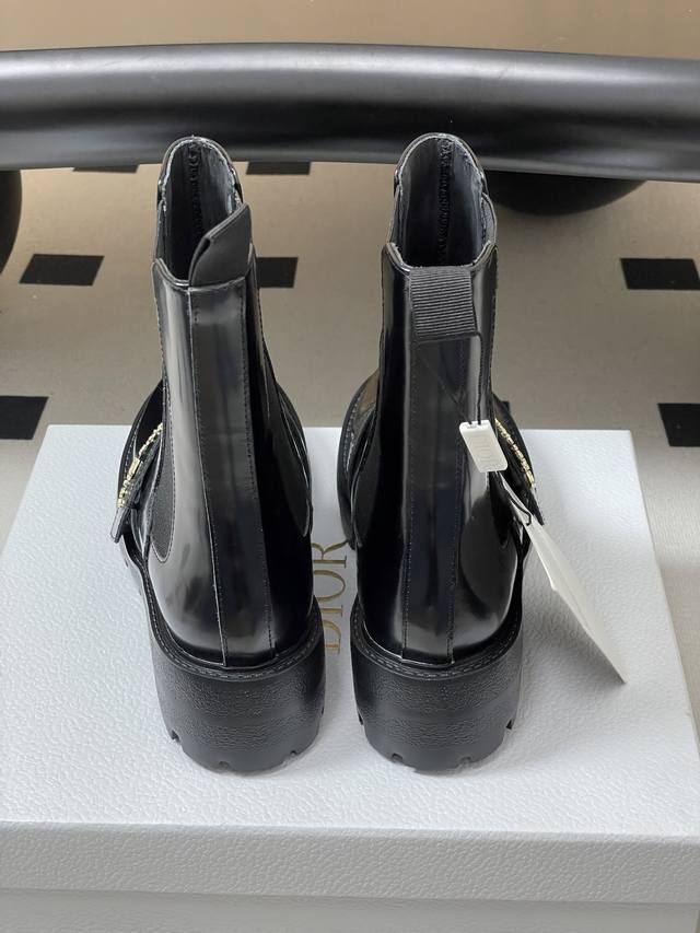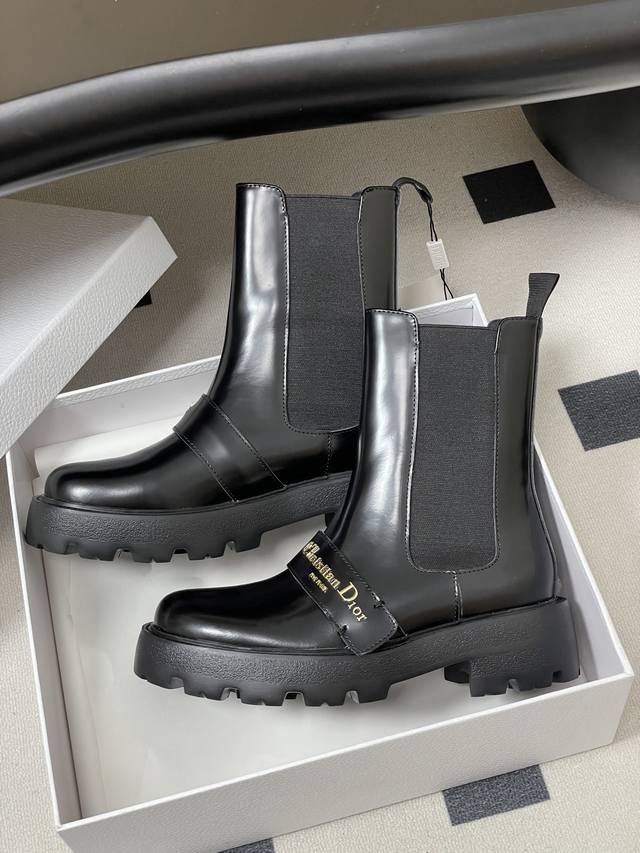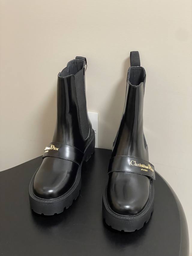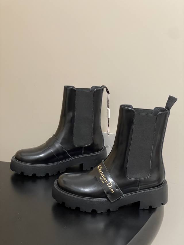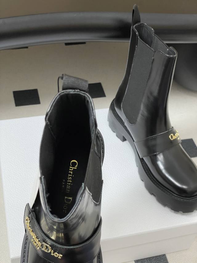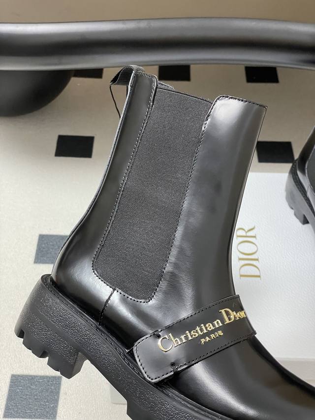 25Ss Early Autumn New Dior D-Quest Ankle Boots Cd Letter Metal Buckle Elastic Band Thick Sole Short Boots Slip-on Motorcycle Style Martin Boots