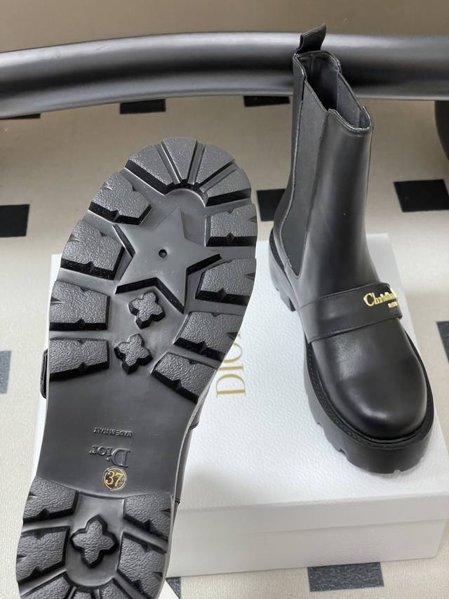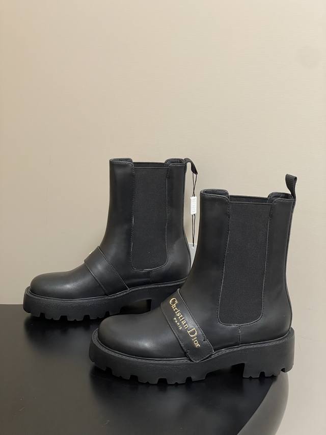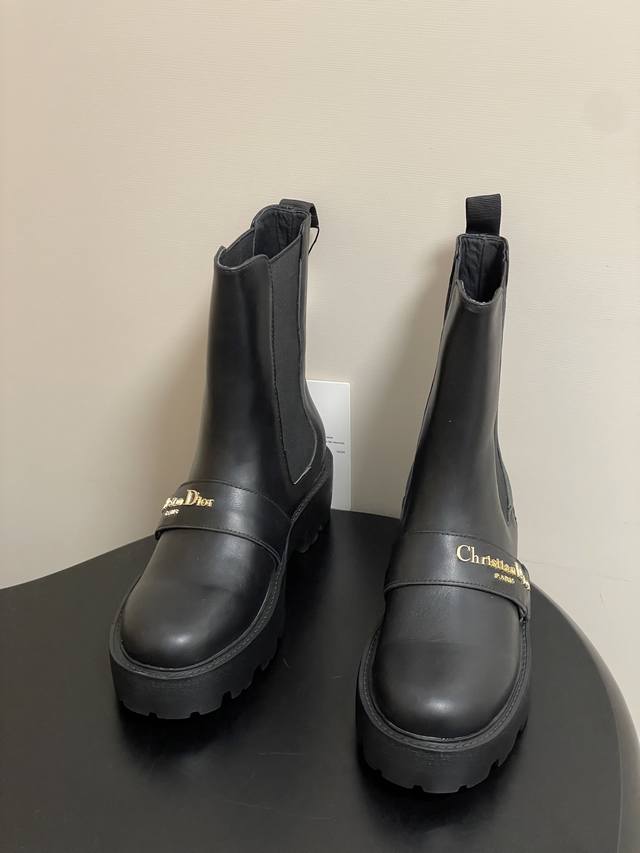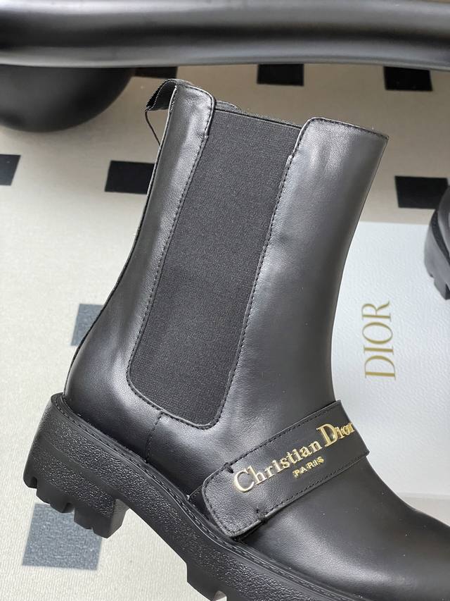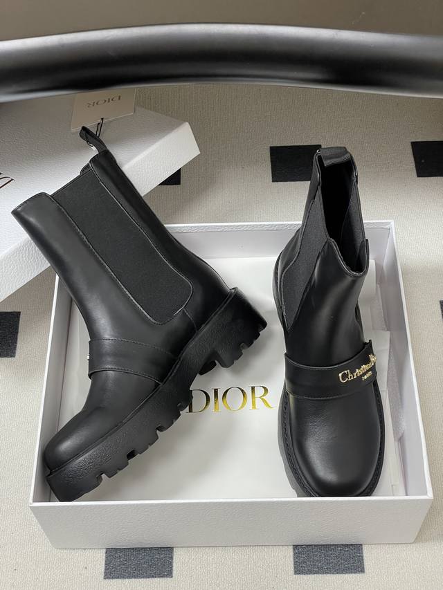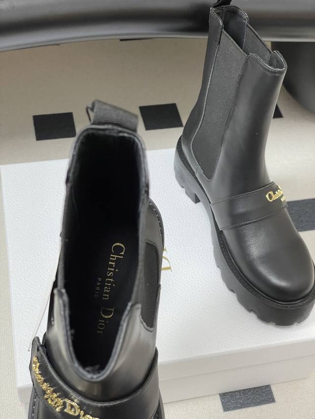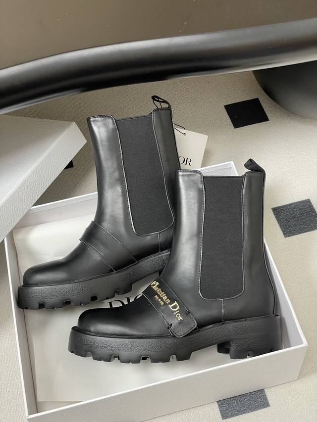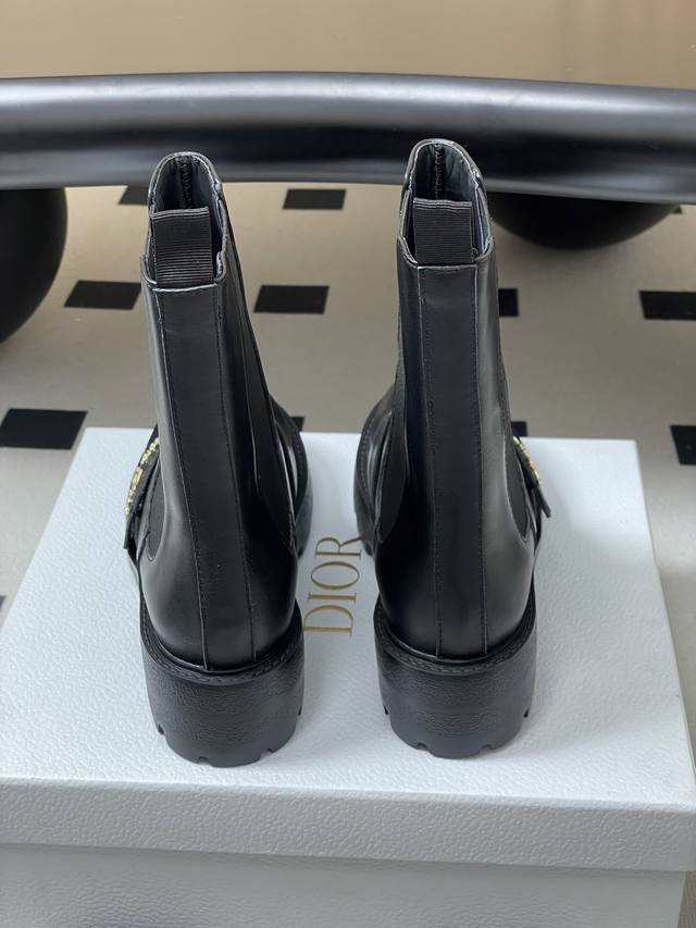 25Ss Early Autumn New Dior D-Quest Ankle Boots Cd Letter Metal Buckle Elastic Band Thick Sole Short Boots Slip-on Motorcycle Style Martin Boots
