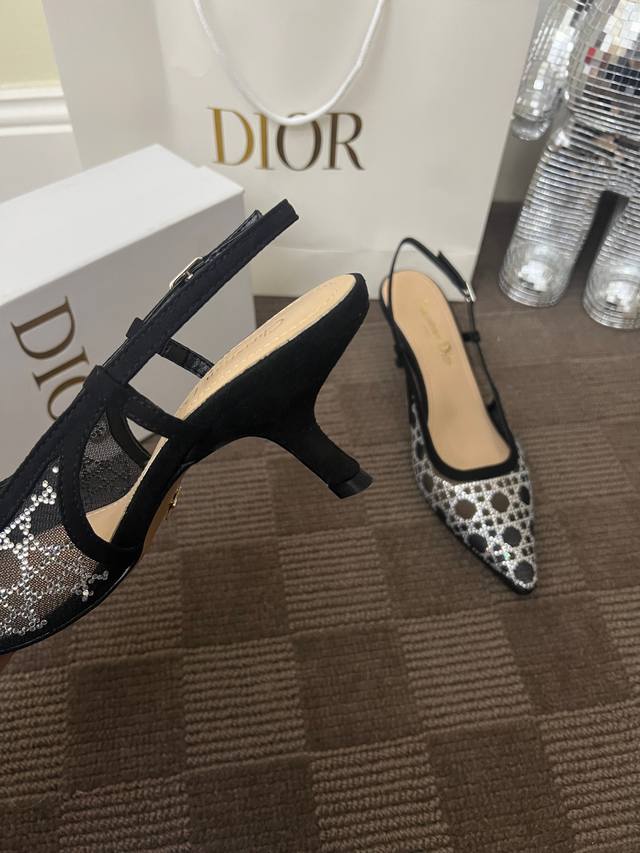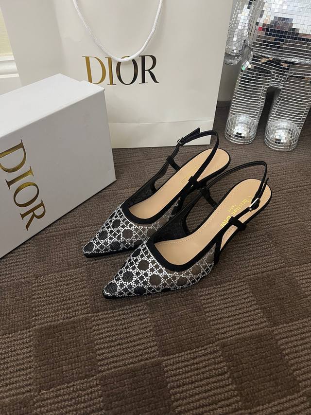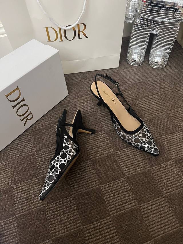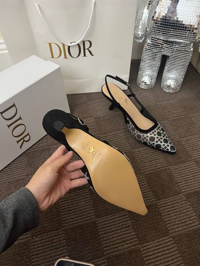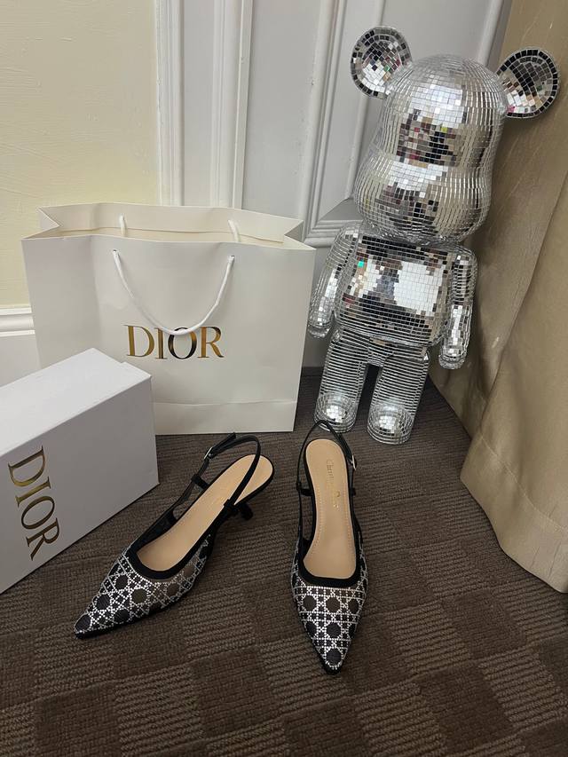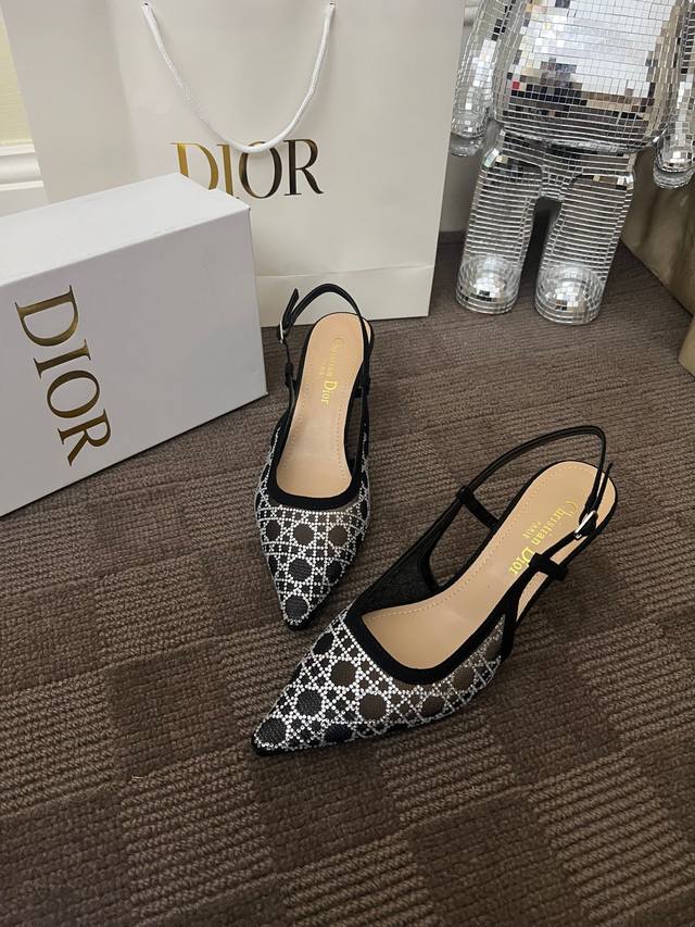 Dior 2025 Spring/Summer Runway New Arrival Bling...Bling...Crystal Shoes Capture One-Strap High-Heeled Mules Women's Shoes Celebrity Style Rhinestone Square Toe Cannage Pattern Kitten Heel Slippers Top-Tier High-End Version Exclusive Release Ddd Material: Original Custom Mesh Inlaid with Australian Rhinestones + Water-Dyed Sheepskin Insole + Original Mold Hardware Buckle + Italian Genuine Leather Outsole Ddd Heel Height: Flat 6.5cm 9.5cm Ddd Size: 34-41 DDD