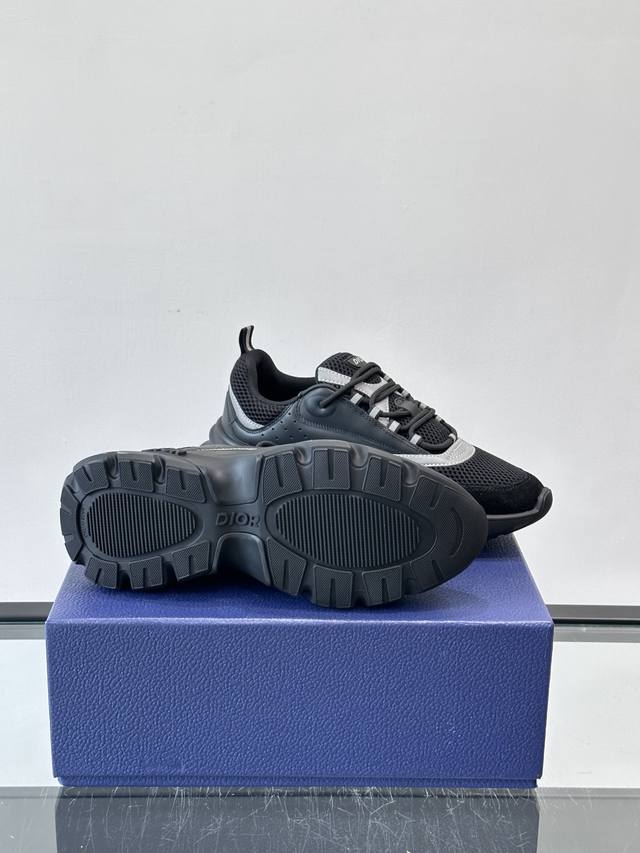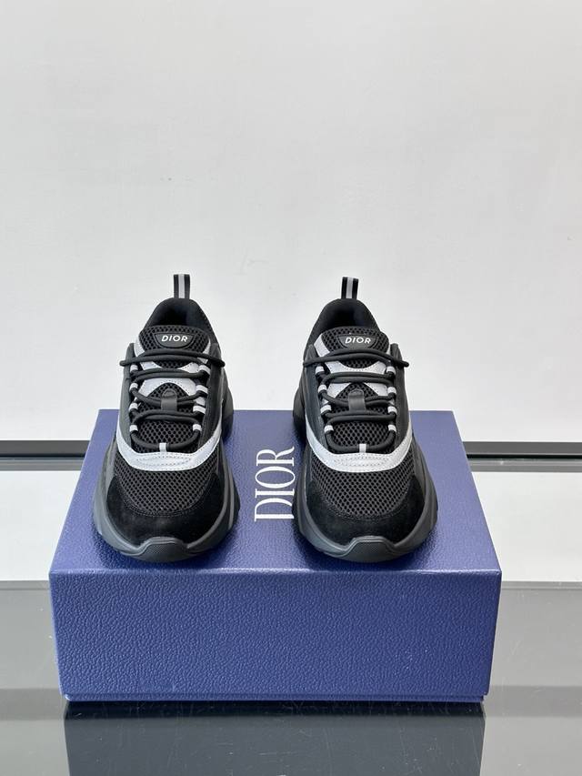 Dior B22 Retro Running Shoes, inspired by classic running shoes, featuring a low-top, platform design, and a combination of cowhide leather and mesh fabric for excellent texture and breathability. The black and white embossed rubber outsole provides great grip and comfort, perfect for everyday wear or sports! The side features an embossed "Cd" logo, subtle yet recognizable. Available in a variety of colors including black, white, and gray-blue, versatile and stylish, loved by the European and American hip-hop scene and bloggers. A must-have for trendy outfits! Size: 39-44 38, 46, 47 (Customized)