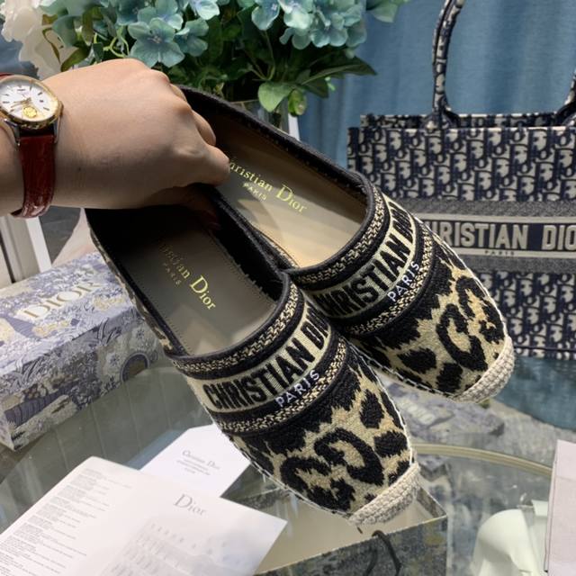 Upper: Decorated with "Christiandior" leopard print cotton embroidery