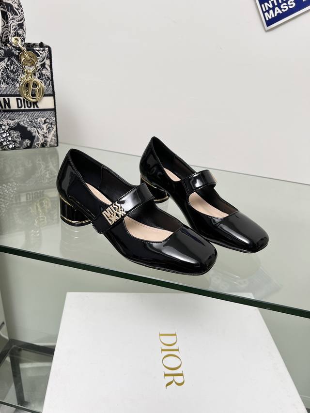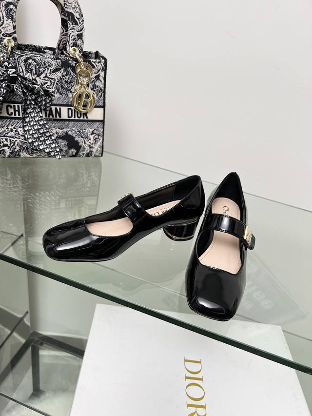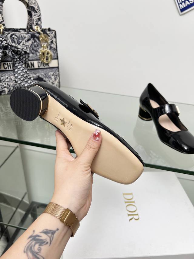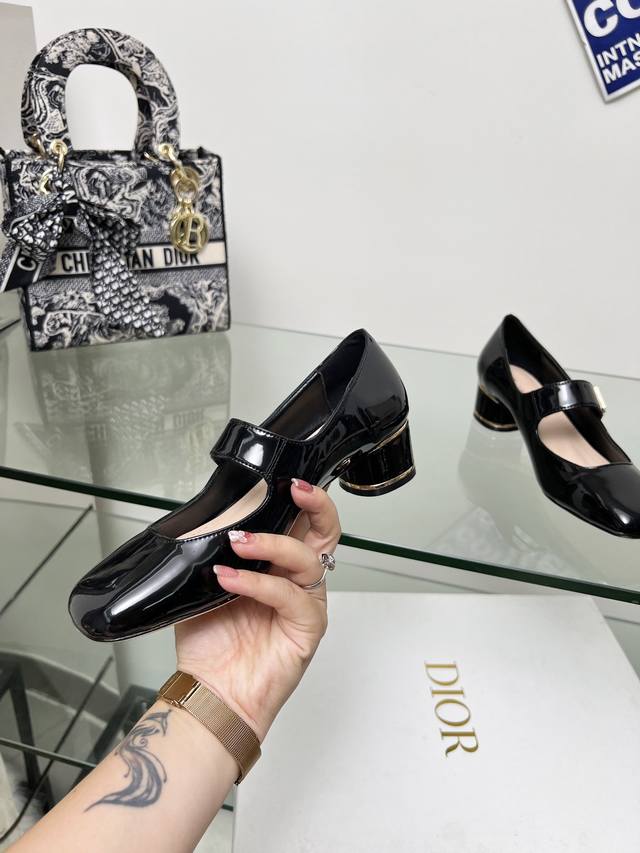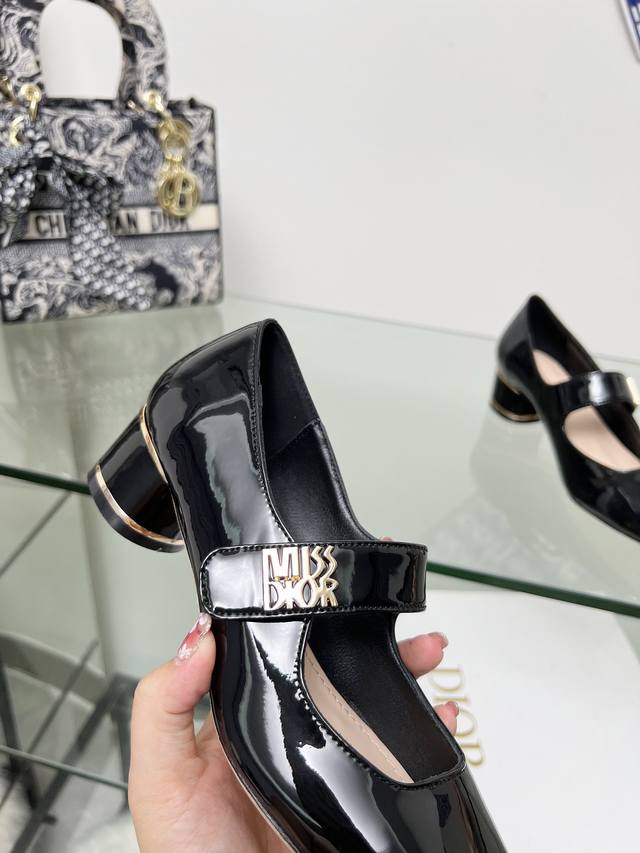 Dior Lace-up Patent Leather High Heels are now available! These Miss Dior high heels made their debut at the Dior Fall/Winter 2024 ready-to-wear collection, showcasing retro charm. The upper is made of patent calfskin leather, adorned with the collection's classic gold-plated Miss Dior logo on the front. The ankle laces and cylindrical heel complement each other perfectly, accented with gold-plated metallic lines, ensuring comfortable wear. The outsole is made of genuine leather. Heel height: 4cm x 8.5cm. Size: 34-42. Custom sizes 34, 40, 41, and 42 are non-refundable and non-exchangeable.