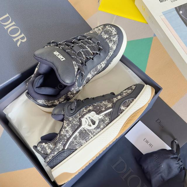 Dior Men's Sizes 39-44, 38, 45. Custom Made. Dior B9S Series Top-Tier Bread Shoes, Casual Sneakers, Skateboard Shoes. Original Purchased and Developed by Ddd. This new B9S skateboarding sneaker is inspired by skateboarding and Dior's haute couture spirit. Crafted from navy blue cotton tweed, it reinterprets the classic cannage pattern, showcasing grained cowhide leather details, paying homage to Dior's exquisite craftsmanship. A padded tongue and technical fabric sock cuff ensure ideal comfort . Classic details are found throughout, such as the Dior logo on the heel and tongue , cannage pattern panels, and the rubber Dior Charm logo on the side, inspired by the Dior logo itself. The rubber sole, engraved with a gradient Oblique print, adds a touch of sophistication and elevates any look with a haute couture feel. Comes with exquisite boutique packaging. Material: Original custom-made top-grain cowhide + tweed. Lining: Custom breathable lining. Outsole: Original molded anti-slip TPU material. Sole thickness: 3.5cm.