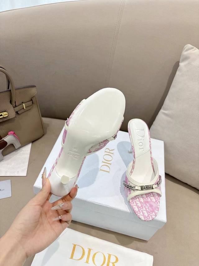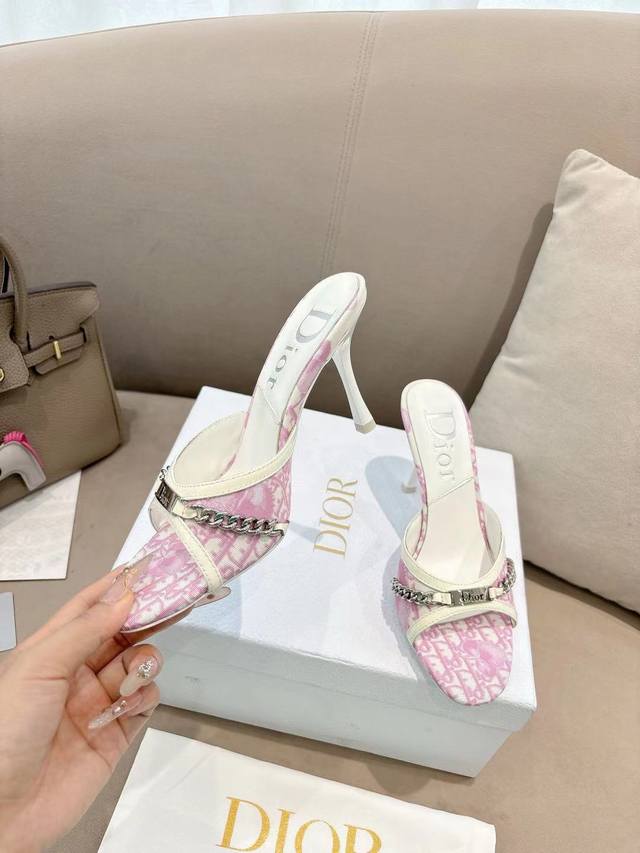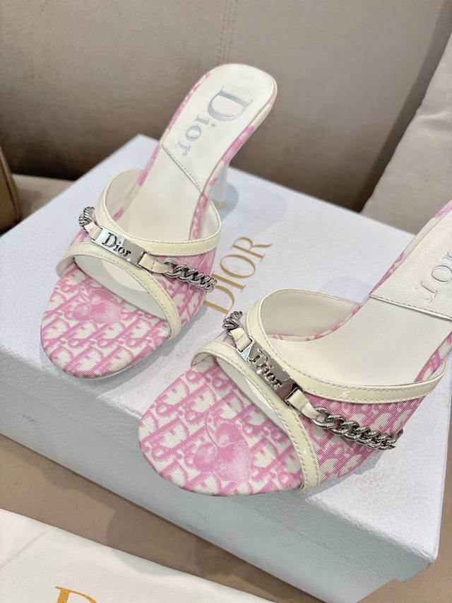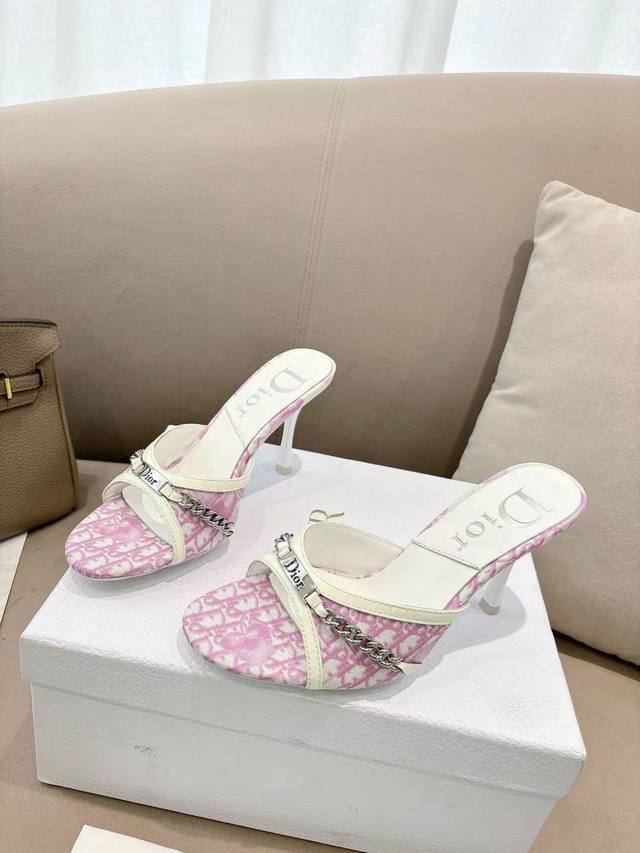 Dior*Dior 2025Ss new summer vintage chain high-heeled slippers are full of princess style, the color is very flattering, and it has a charming retro beauty