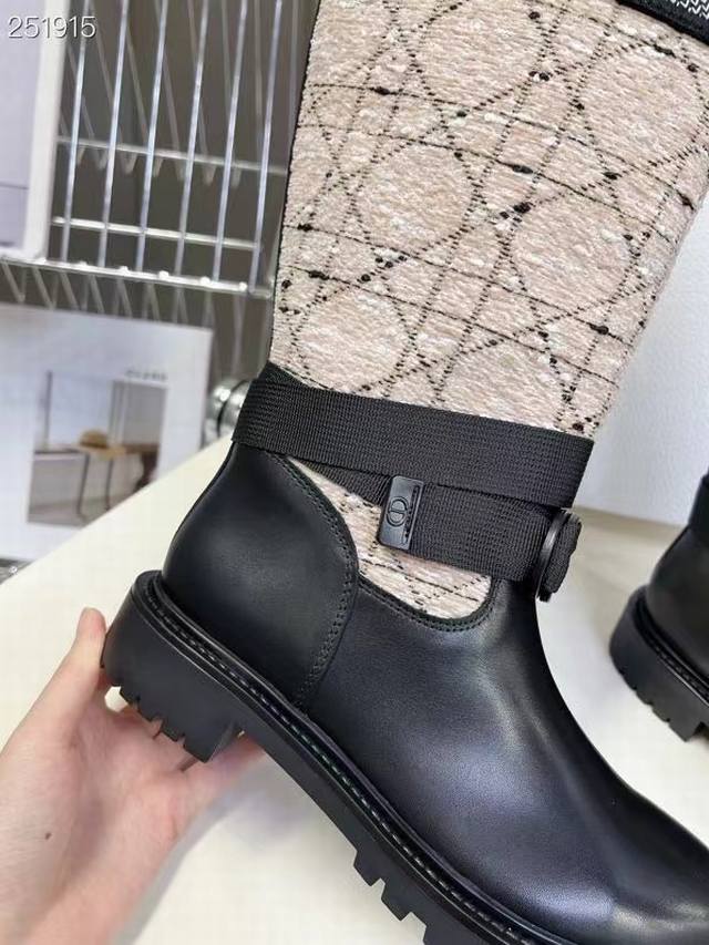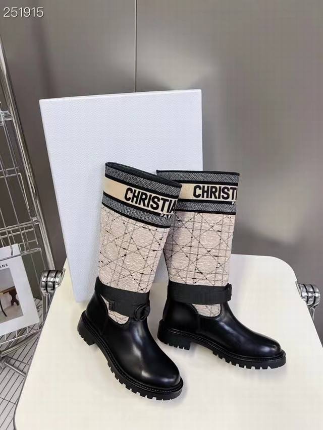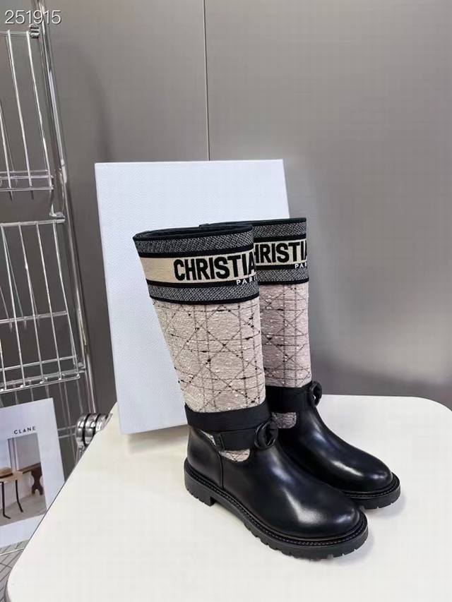 Dior's new autumn and winter colorblock boots, the latest autumn and winter embroidered colorblock logo, round-toed high-top knight boots for women, the same style as celebrities Narna and Yi Mengling.