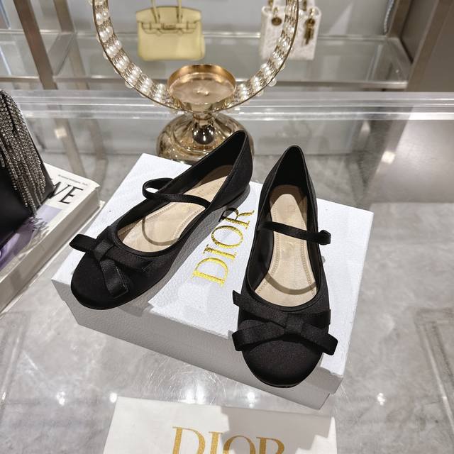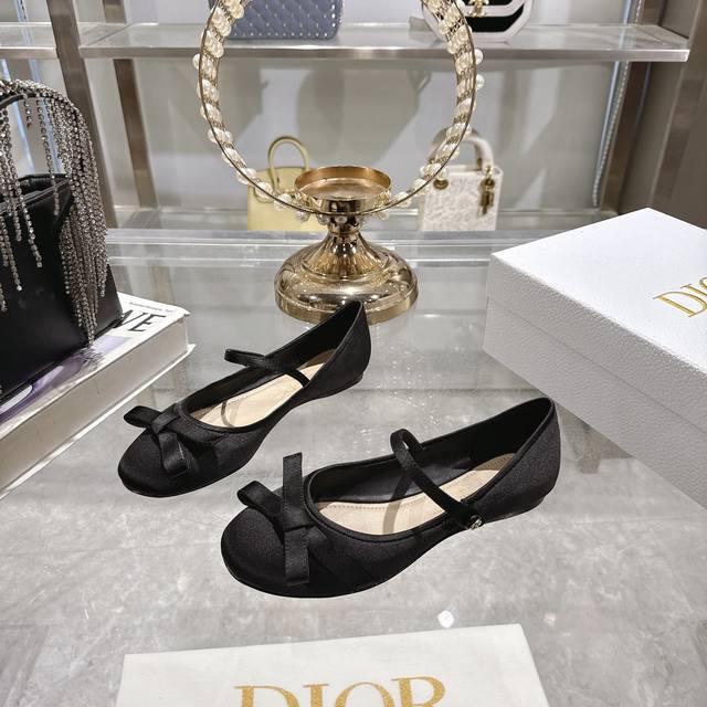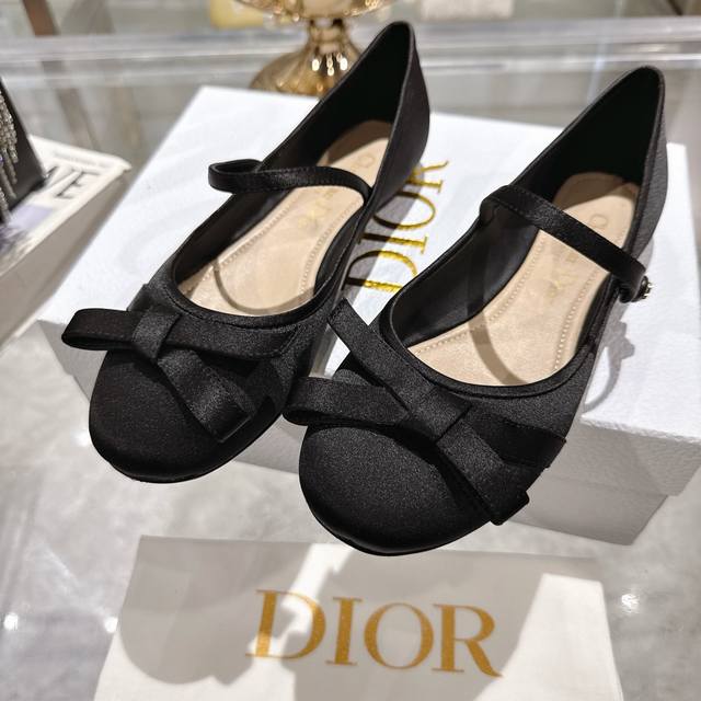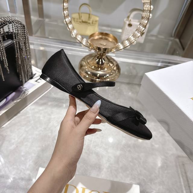 Factory Dior 25Ss new autumn/winter bow-knot ballet flats. These silk bow-knot flats are so cute!