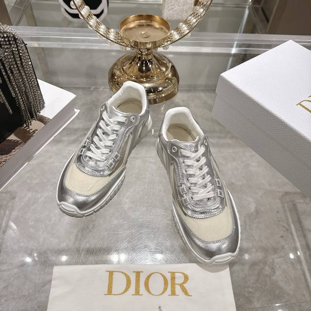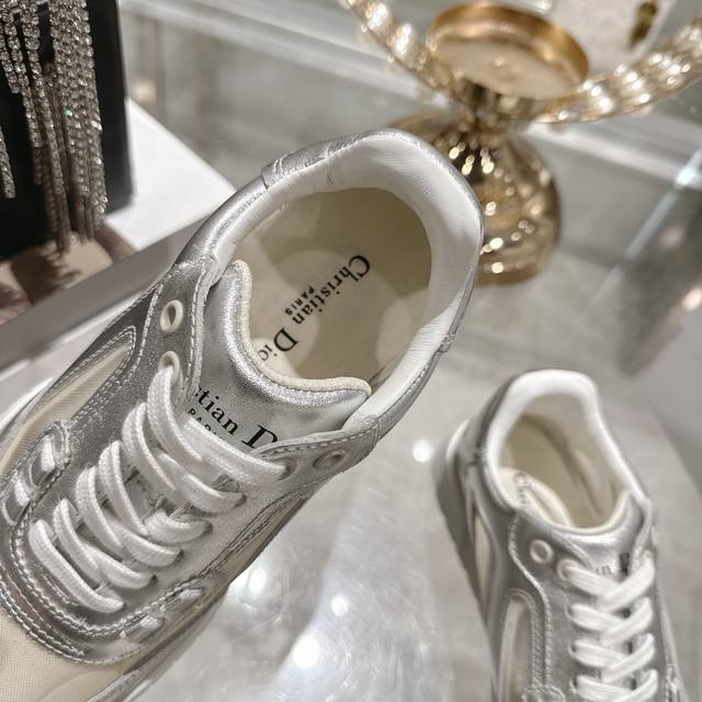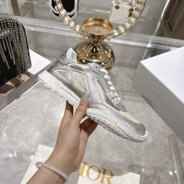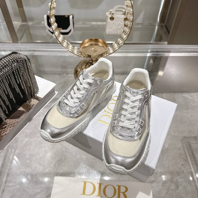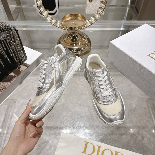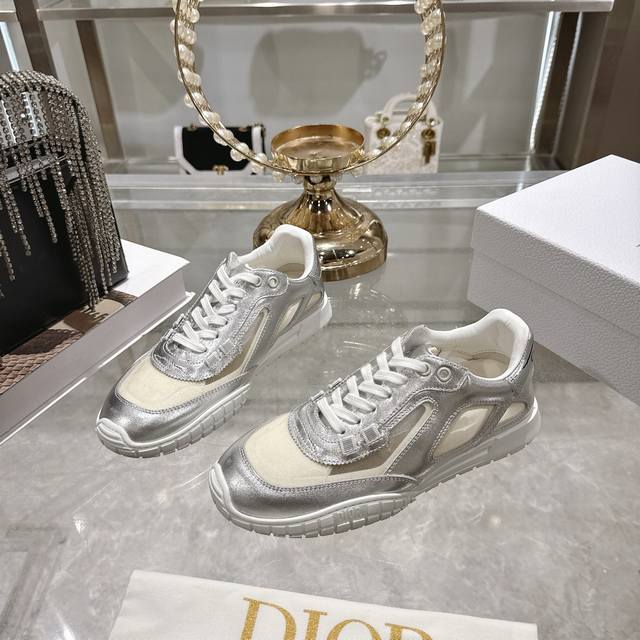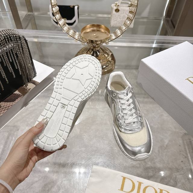 Factory Direct 2025 Early Autumn New Dior Run'n'Dior Film Sneakers, Cd Leather Casual Running Shoes, Couple Style Simple and Super Versatile. The upper features a logo label. Perfectly luxurious on the feet, suitable for all seasons. Extremely comfortable! This Run'n'Dior sneaker is a new addition to the 2025 Autumn collection, reinterpreting sportswear with an elegant and fashionable design. The upper is crafted from white and black mesh fabric, with the laces and heel adorned with the Christian Dior Paris logo. The exquisite two-tone sole is lightweight and soft, adding a couture touch to various casual looks. Upper: Leather and mesh Lining: Custom breathable mesh fabric Outsole: TPU absorbent membrane anti-slip outsole, super lightweight Sizes: Women's 35-39, 40-41 (Made to order, no returns or exchanges)