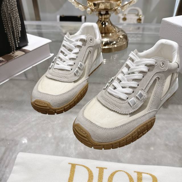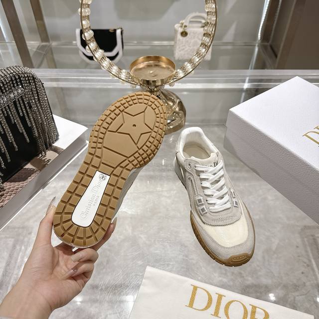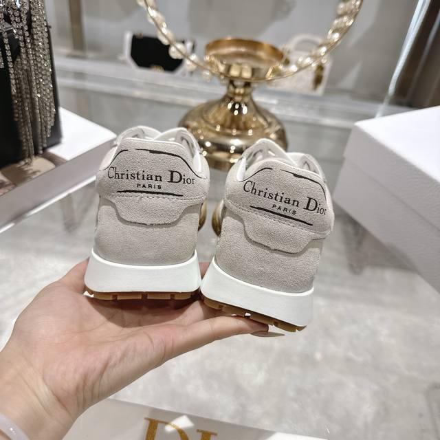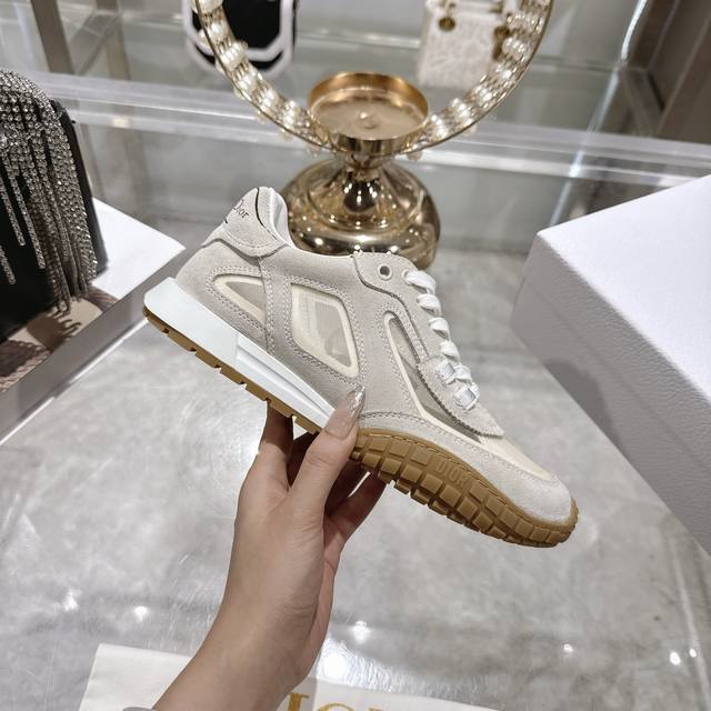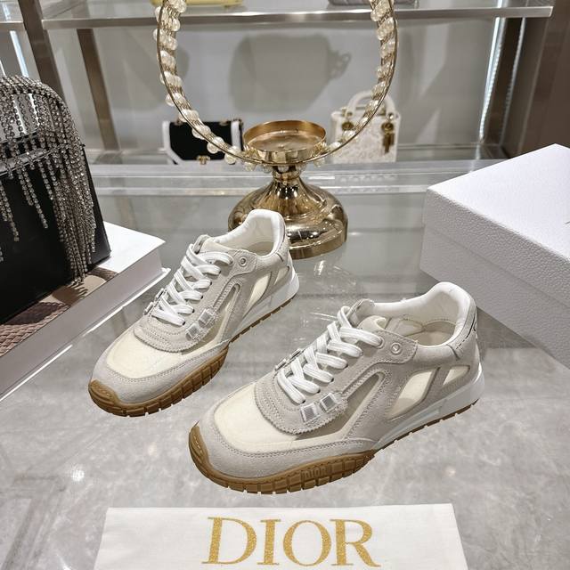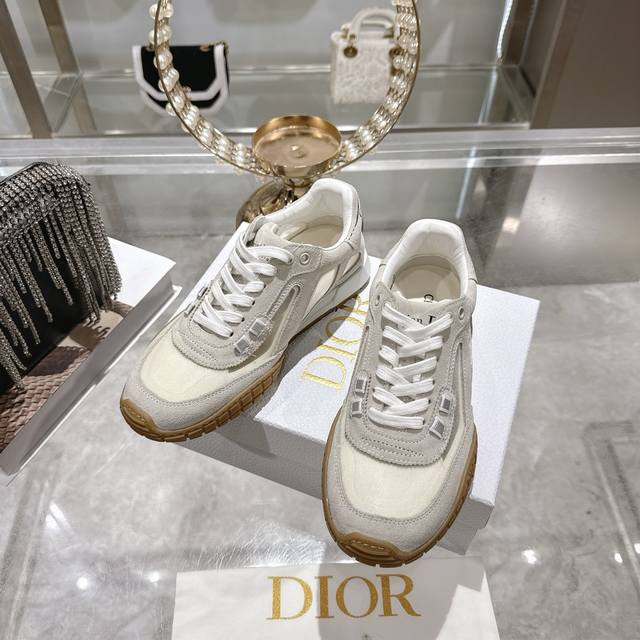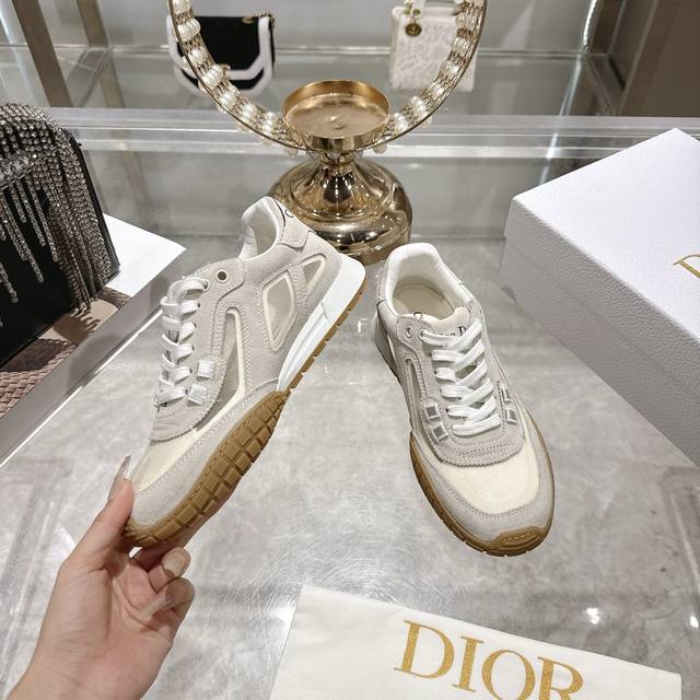 Factory Direct 2025 Early Autumn New Dior Run'n'Dior Film Sneakers, Leather Casual Running Shoes, Couple Style. Simple and super versatile. The upper features a logo label. Perfectly luxurious and can be paired with any spring, summer, autumn, or winter outfit. Extremely comfortable! This Run'n'Dior sneaker is a new addition to the 2025 Autumn collection, reinterpreting the sporty style with an elegant and fashionable design. The upper is meticulously crafted from white and black mesh fabric, with the laces and heel adorned with the Christian Dior Paris logo. The exquisite two-tone sole is lightweight and soft, adding a high-end feel to various casual looks. Upper: Leather technical mesh Lining: Custom breathable mesh fabric Outsole: TPU absorbent membrane anti-slip outsole, super lightweight Sizes: Women's 35-39, 40.41 (Made to order, no returns or exchanges)