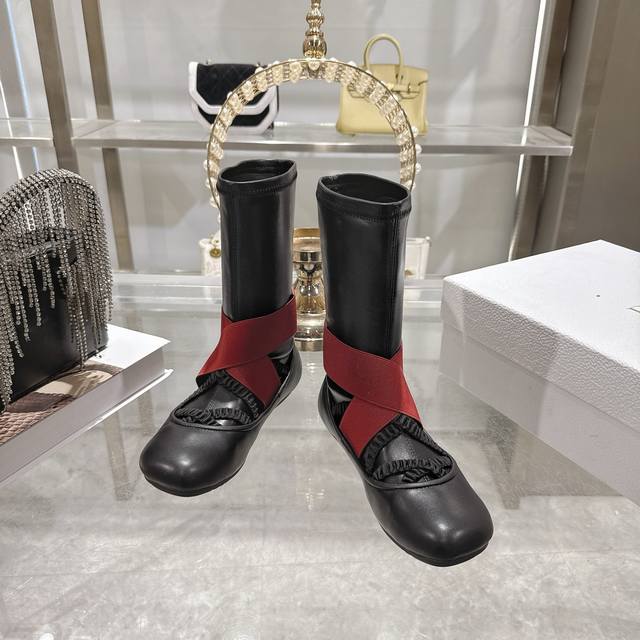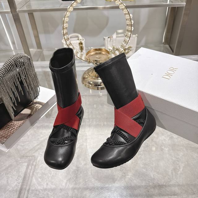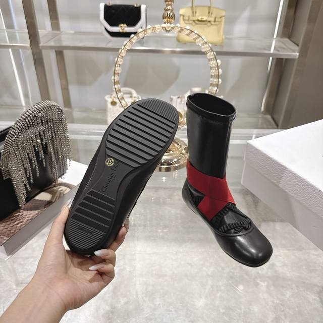 Factory direct Dior 2025 Fall/Winter new ankle boots. These shoes perfectly interpret the fusion of classic and fashion, each pair hiding a unique romantic gene. Come and immerse yourself in its charm. Classic black is a timeless favorite in the fashion world. The red-band color-blocked version is eye-catching. Paired with a simple little black dress, it's retro yet stylish, casual yet sophisticated. Material: Imported sheepskin upper, water-dyed sheepskin lining + original non-slip rubber outsole. Size: 34-41. 34, 40, 41 are custom-made and non-refundable.