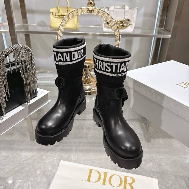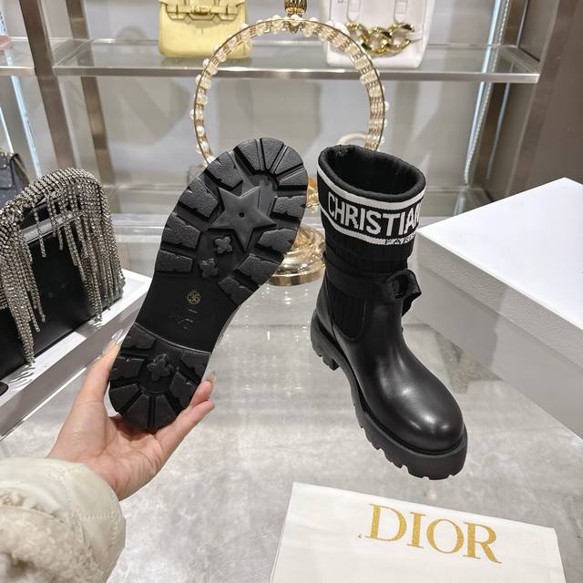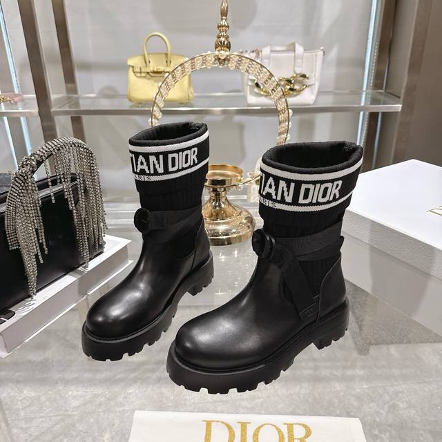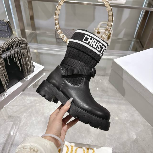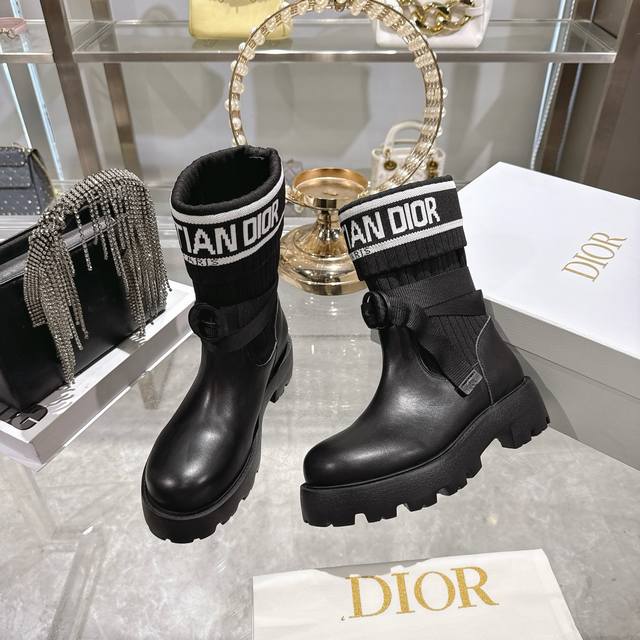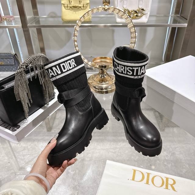 Factory Direct Dior New Sock Boots, Ankle Boots, Stretch Knee-High Boots DDD The boot body combines a leather sole with a knitted sock-like cuff. The leather part is structured and stylish, while the knitted cuff adds softness and elasticity, combining both coolness and comfort. A striking white "Christian Dior Paris" lettering webbing is printed on the upper of the sock cuff, enhancing brand recognition and becoming the visual focus of the look. DDD The boot body features buckle-style laces, improving practicality and adding a rugged workwear detail to the overall look; the platform sole provides both height and a retro feel. This boot is highly versatile and can be flexibly combined with clothing and accessories to suit different style needs, easily adapting to various occasions such as everyday outings, parties, or light work. DDD Upper: Cowhide Stretch Socks DDD Lining: Cowhide DDD Outsole: Original Mold Outsole DDD Size: 35-39 40 41 Sizes are custom-made and non-refundable DDD