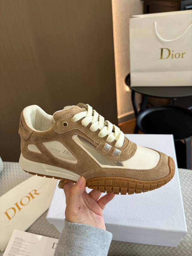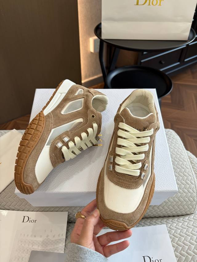 Factory direct high-end version. Original purchase and development. This Dior Vibe sneaker embodies the spirit of Dior haute couture, reinterpreting the classic running shoe, German training shoe, and Cortez shoe. It features an Oblique lambskin lining, a 3D-printed logo on the heel, and original replica materials, creating a striking modern style. Details are showcased with a 3D effect, and the iconic logo details on the side and back further embellish the design. It complements various casual or elegant items, creating a modern look. * The tongue features overlapping stitching with three different colors of fabric and leather, adorned with the Christian Dior Paris logo. Consistent with the original, full of detail. A direct comparison, far superior to ordinary knock-offs on the market. * The original TPU sole is decorated with the Dior logo. The textured sole is decorated with the Christian Dior lucky star symbol. Consistent with the original, full of detail. Truly high-quality goods. Celebrities and influencers have all worn them, looking stunning and amazing. Comes with authentic original packaging. Material: Original cowhide upper with cow suede mesh; original mold, ultra-lightweight and high-quality TPU outsole: 5 colors included. Sizes: 35-39, 40-41 can be customized.