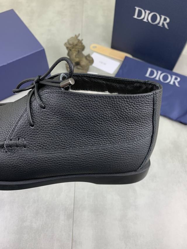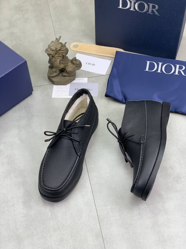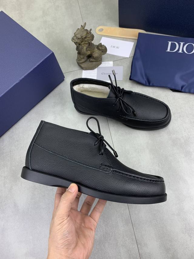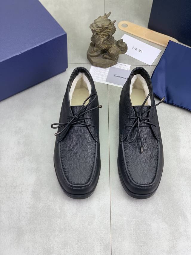 Factory direct price! High-quality Dior shoes with genuine wool lining! Top-tier Italian import! Men's high-top business casual leather shoes, original imported calfskin upper, exquisite texture, gentlemanly style, warm genuine wool lining, top-quality Italian original rubber outsole, first-class workmanship, top-notch quality! Size: 39-44, 45 custom-made.