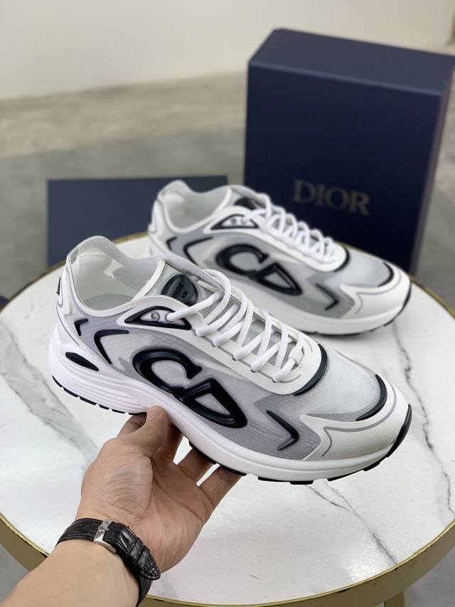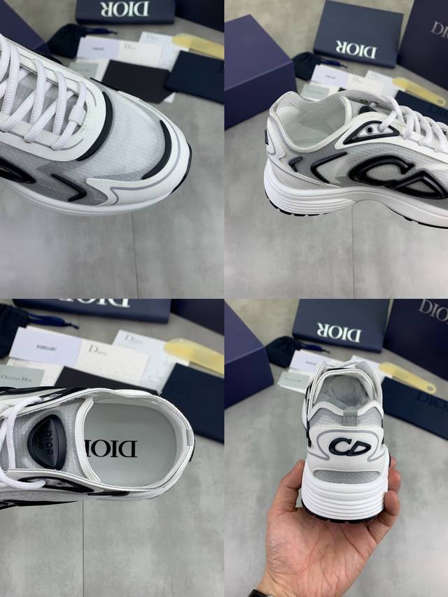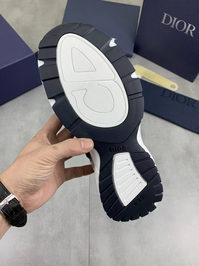 Factory direct price. Latest top quality Dior men's B30 upgraded low-top sneakers, a collaboration series. This newly launched B30 low-top sneaker is one of the flagship styles in the series. It features a leather upper combined with mesh fabric and white technical material, adorned with a reflective Cd30 graphic logo. The heel and tongue feature the B30 and Cd30 logos, while the exceptionally lightweight sculpted rubber sole with signature embellishments enhances its style. Internal elastic details create an ideal comfortable wearing experience, suitable for various casual looks. Showcasing a fashionable and modern sporty style. Size: 35-46. Note: Size 46 is custom-made.
