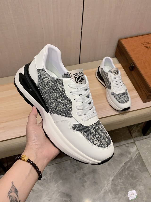 Factory direct price men's shoes, sportswear, original Dior* latest hot-selling casual shoes, top brand luxury~ top-quality~. The upper is made of imported breathable cowhide paired with breathable sheepskin insole and exquisite workmanship. Original design, stylish and soft rubber outsole, wear-resistant and non-slip, lightweight and comfortable on the foot. Actual product photos show even better. Sizes: 38-44. Two colors available.